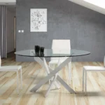 Forma Redonda de 120 cm: El diseño circular elimina las esquinas agresivas, facilitando el tránsito en zonas de paso. Además, visualmente ocupa menos espacio que una mesa cuadrada o rectangular, lo que la hace perfecta para pisos urbanos o comedores integrados en el salón.