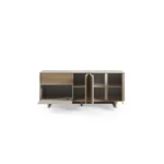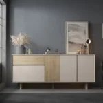 El Aparador Carpi es una pieza de gran capacidad y diseño vanguardista, ideal para salones y comedores que buscan un mueble funcional que combine la calidez de la madera con la sobriedad de los tonos neutros.