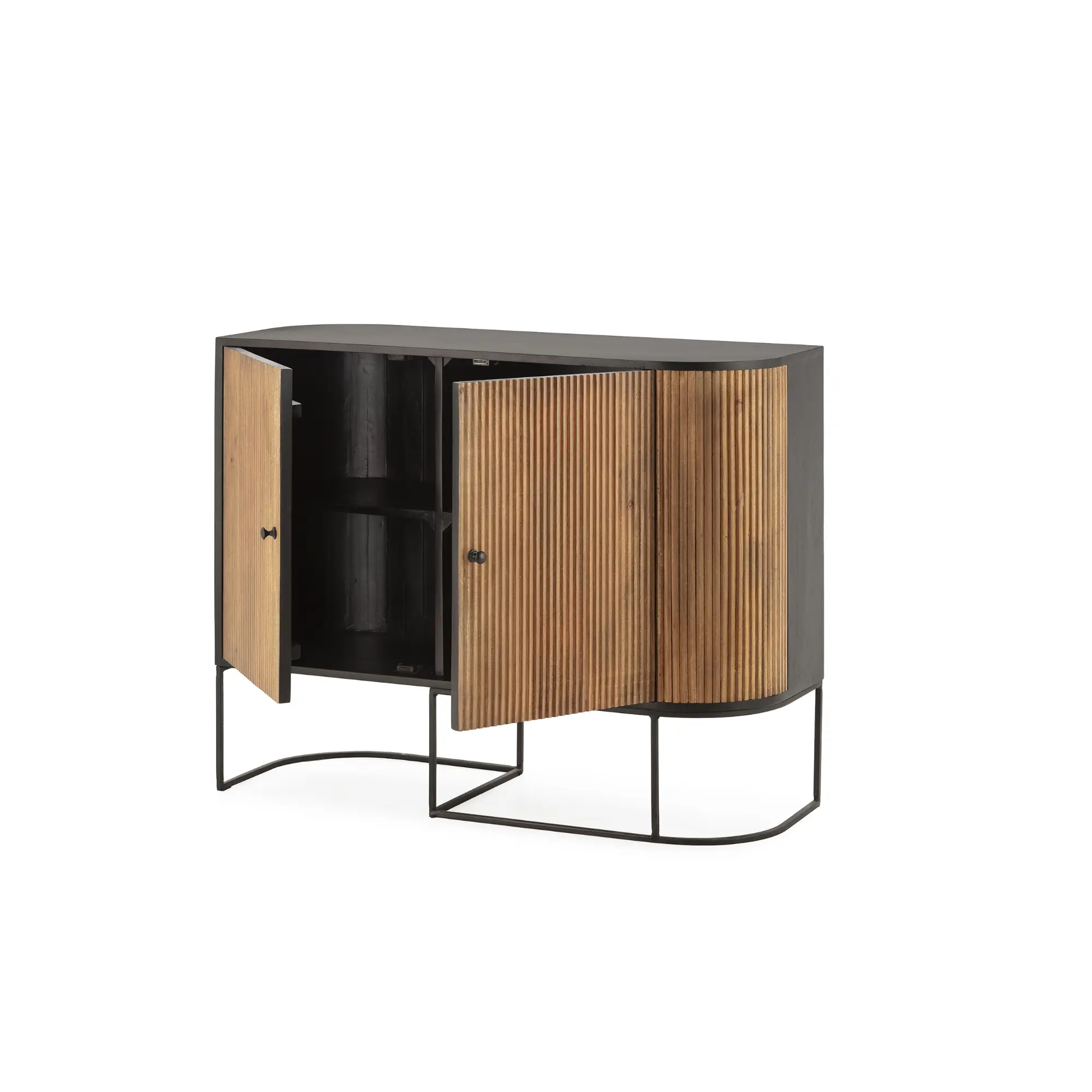 Aparador Curve 2P de 110 cm en madera de mango con patas de metal, moderno y funcional, ideal para almacenar con estilo.