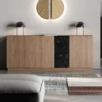Dualidad de Materiales Premium: La calidez del sepet envuelve el mueble, mientras que los detalles en mármol Lotus aportan esa nota de «lujo silencioso» que define las tendencias actuales de interiorismo. Es una pieza que no necesita accesorios estridentes para destacar.
