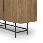 Base Geométrica de Metal: El mueble se apoya sobre una base metálica con un diseño de estructura geométrica en color negro. Esta base eleva el aparador y le confiere un aire moderno y ligero.