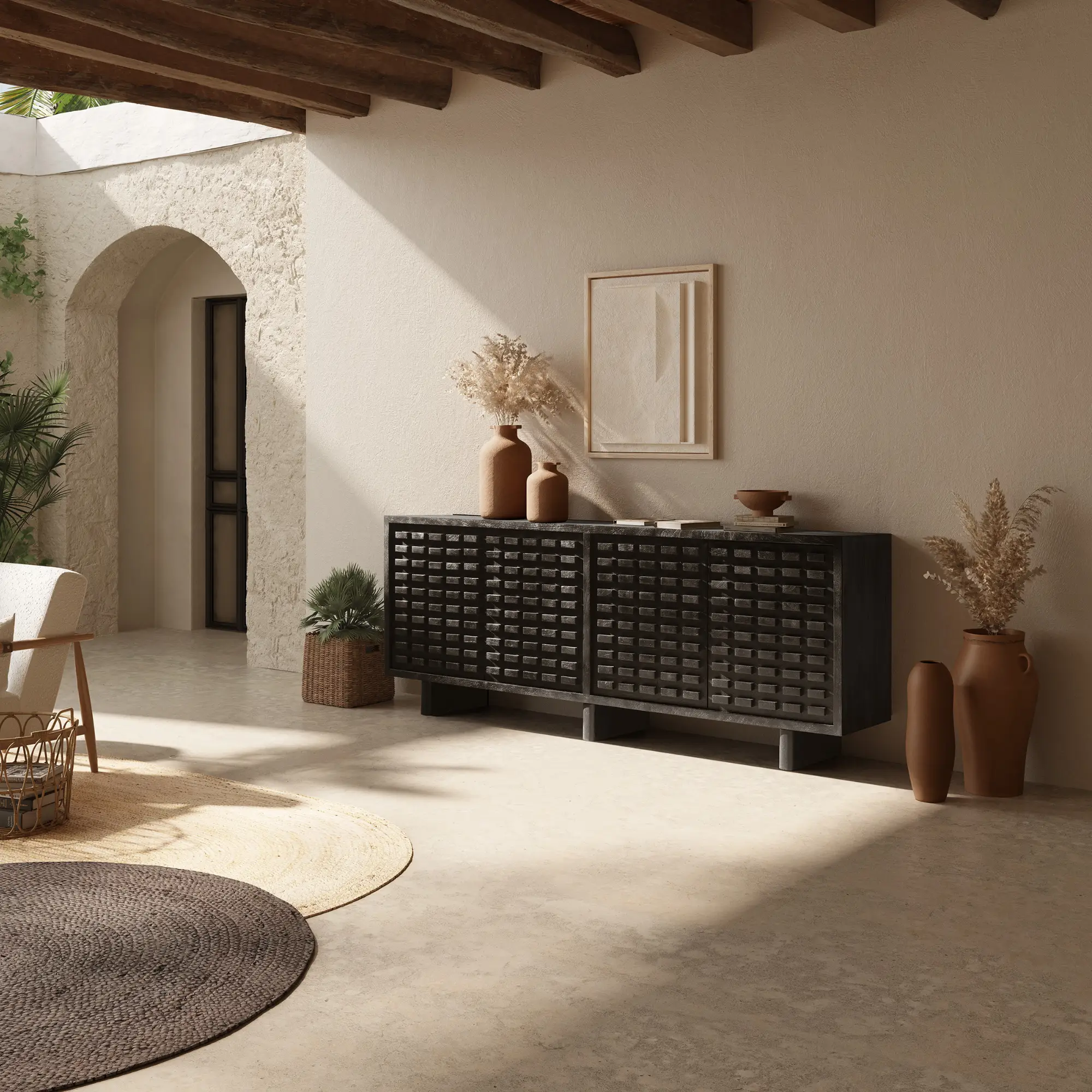 El Aparador Inaya 200 cm Negro es una pieza elegante y contemporánea que aporta carácter a cualquier estancia. Su diseño en color negro crea un estilo sofisticado, mientras que su amplio espacio de almacenamiento lo convierte en una opción práctica para el día a día.