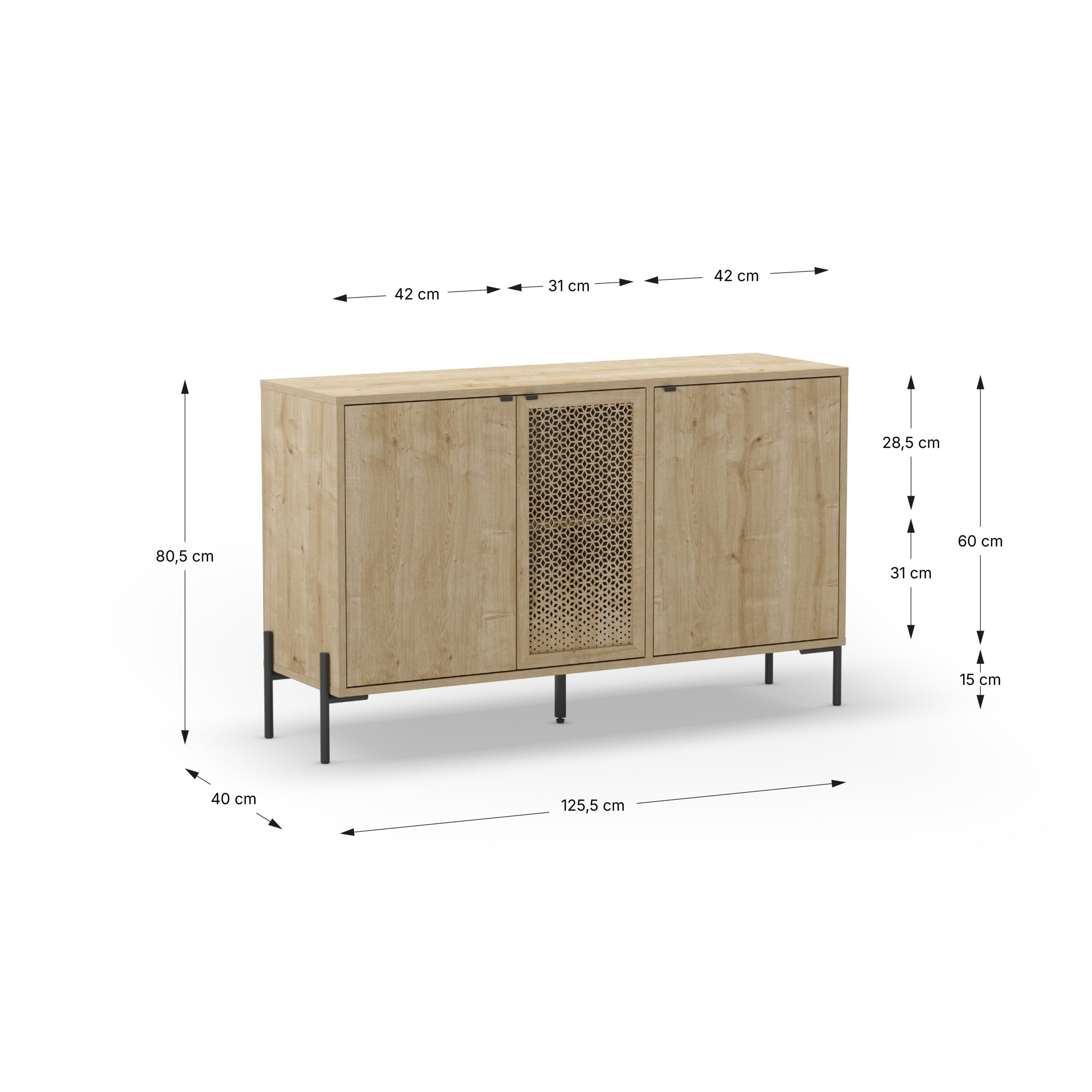 APARADOR INCA 3P ROBLE PATA METAL