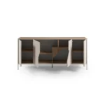 Estética de Líneas Limpias: Al carecer de huecos abiertos, este mueble mantiene todo el contenido oculto, lo que contribuye a generar una atmósfera de calma y limpieza visual en el comedor o el salón.