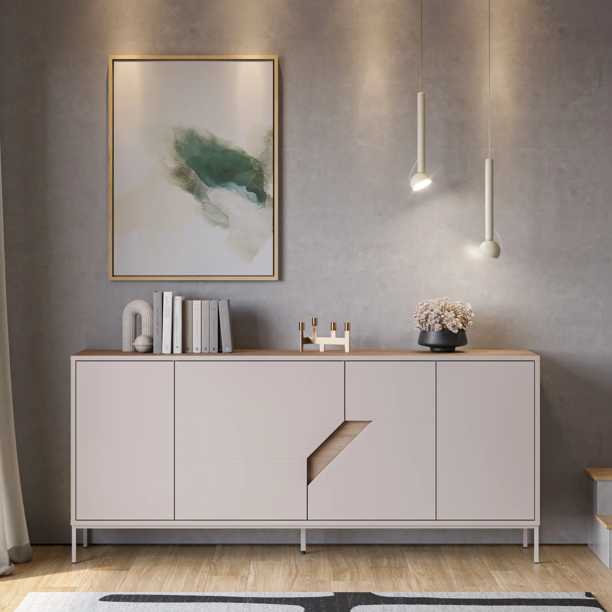 El Aparador Lilou es una pieza robusta y sofisticada, diseñada para quienes valoran la sencillez del diseño nórdico con un toque contemporáneo. Su combinación de colores neutros —la calidez de la madera Sepet y la suavidad del Crema— permite que se integre sin esfuerzo en decoraciones minimalistas, rústicas modernas o de inspiración mediterránea.