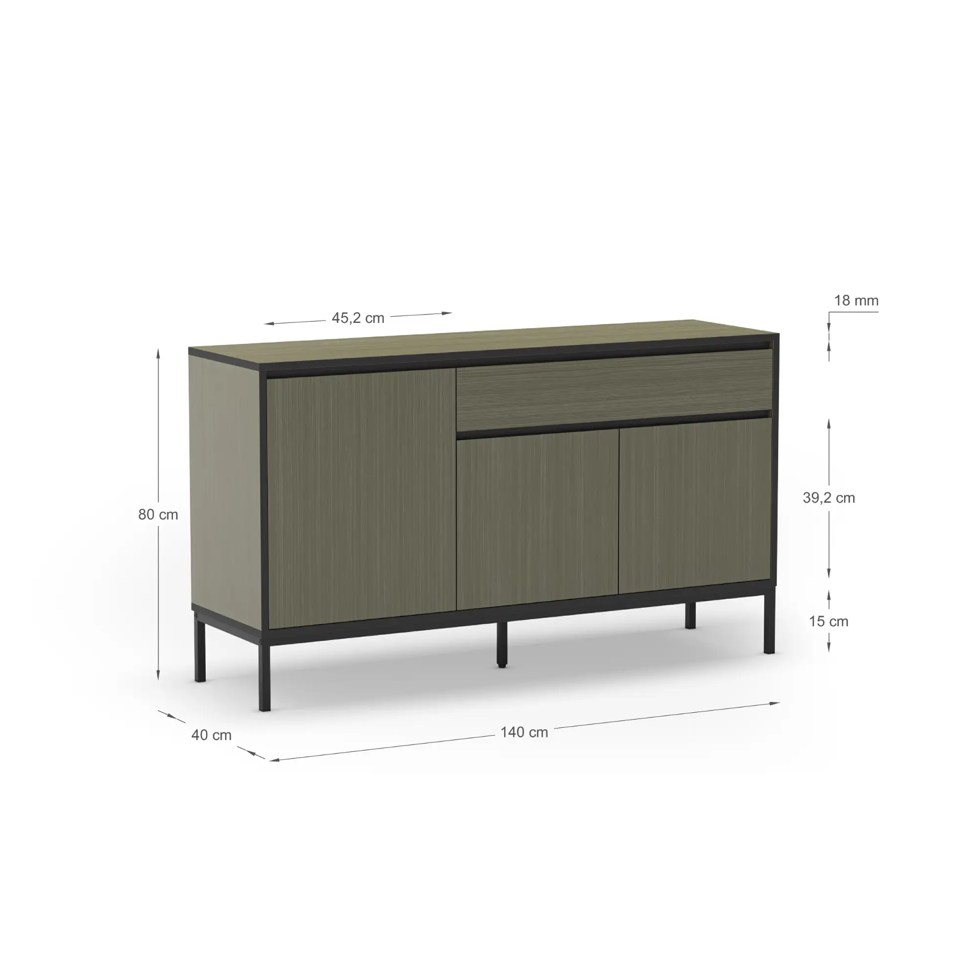 APARADOR LORENZA 3P1C 140CM VERDE/NEGRO PATA METAL