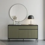 El Aparador Lorenza es una apuesta segura para los amantes del interiorismo que buscan salirse de lo convencional. Su combinación de verde mate y detalles en negro industrial crea una atmósfera de sofisticación moderna, ideal para estancias que necesitan un punto focal con carácter y profundidad.