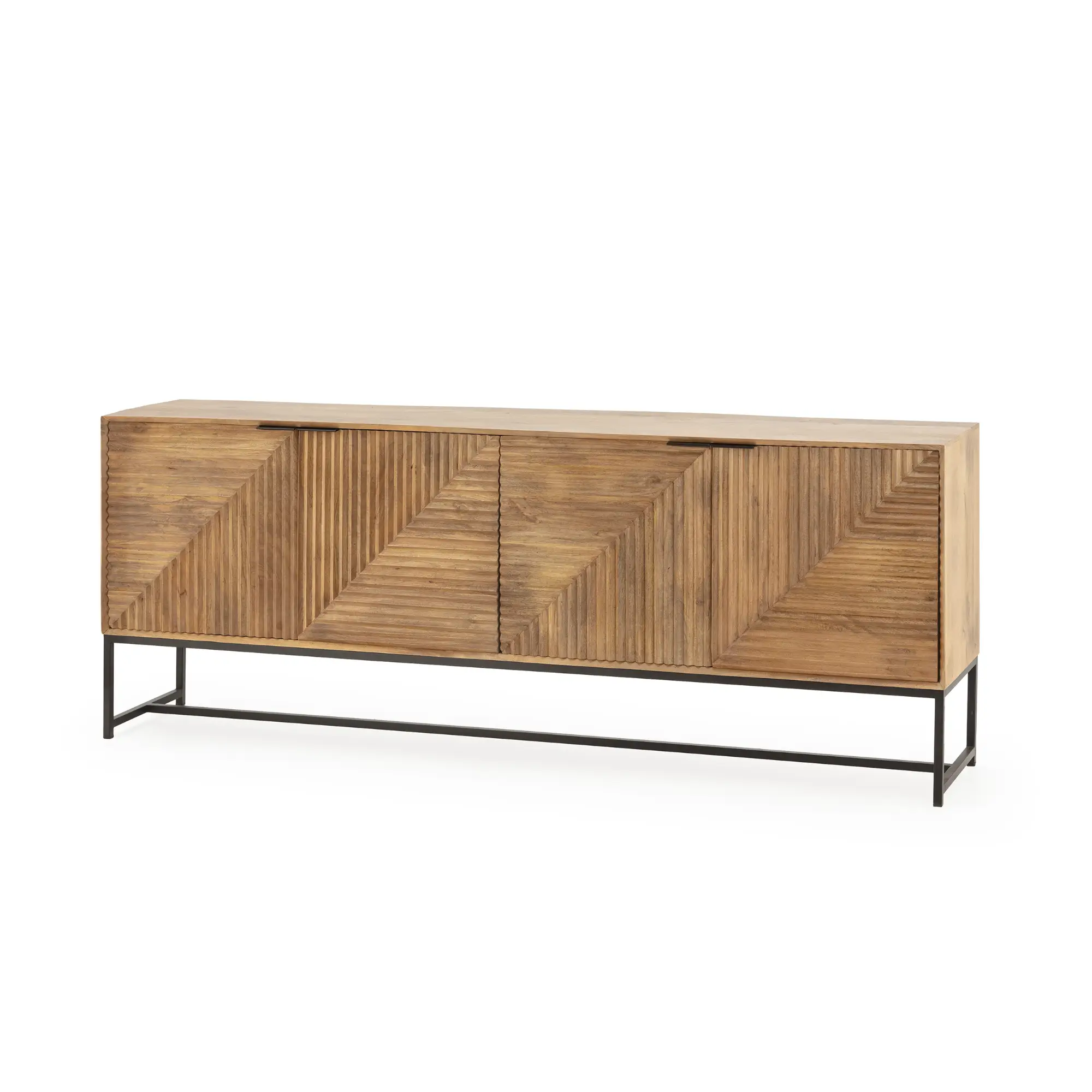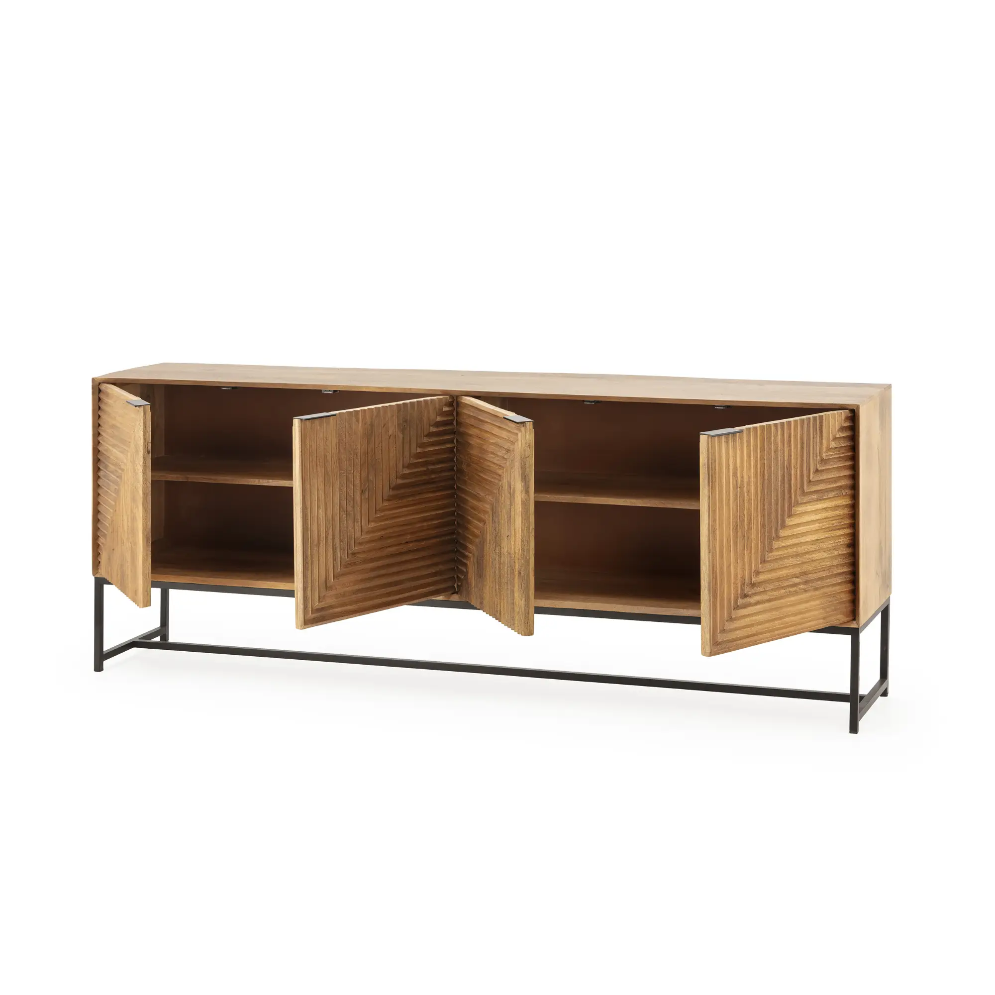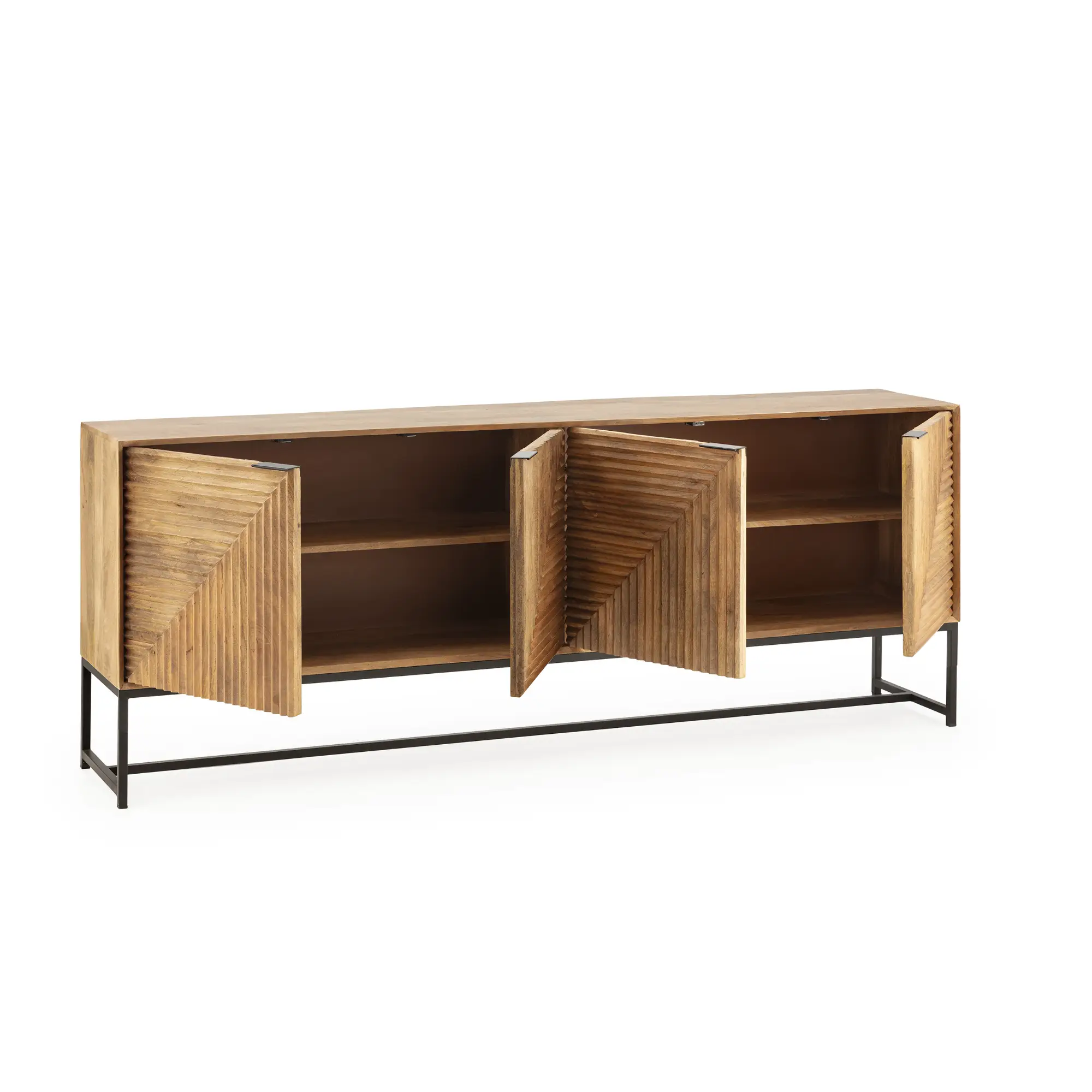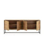 Aparador Nereida de 210 cm en acabado natural con patas de metal, amplio y funcional, ideal para organizar y aportar estilo al espacio.