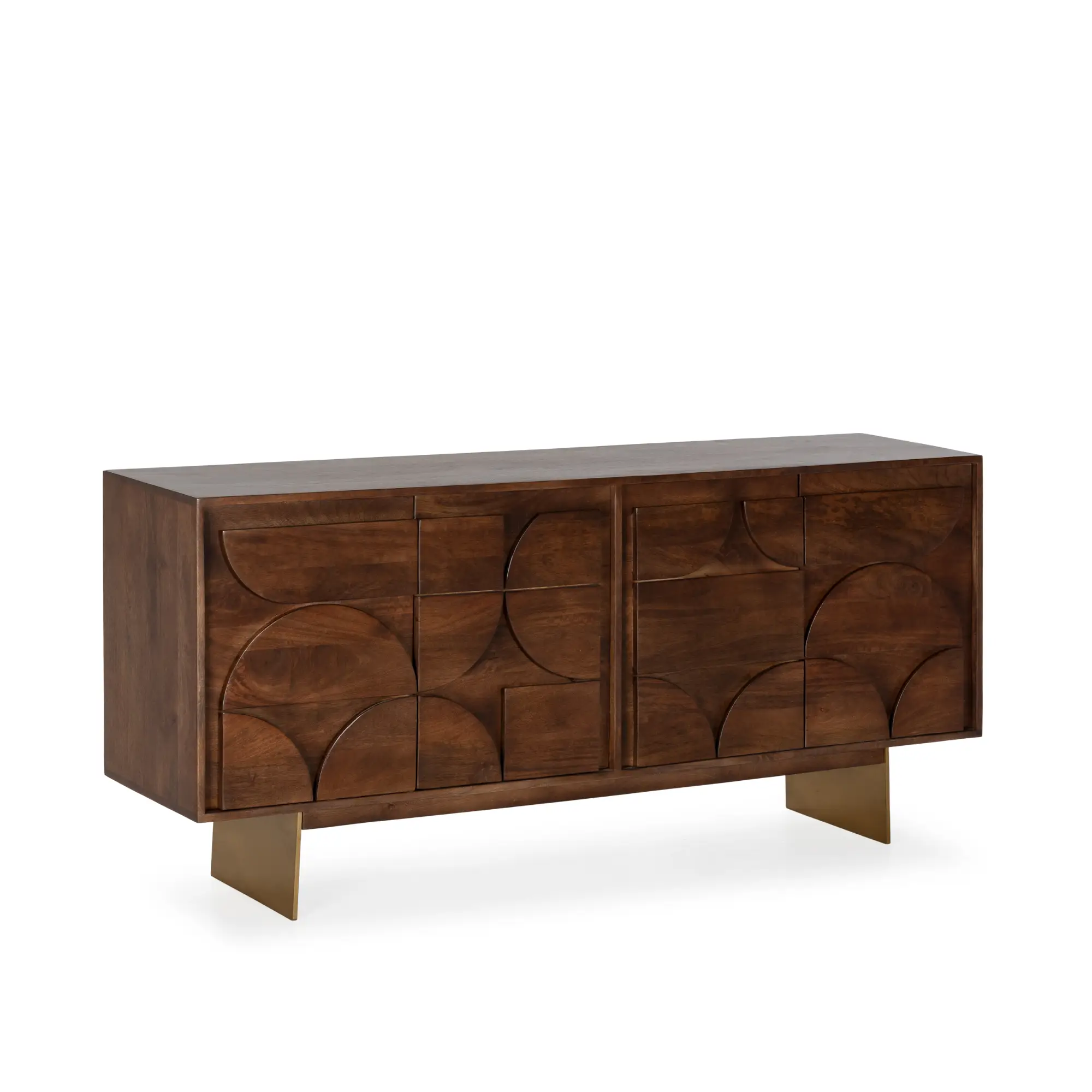 Aparador Trisha 4P de 165 cm en marrón oscuro, elegante y funcional, ideal para organizar y aportar calidez al espacio.