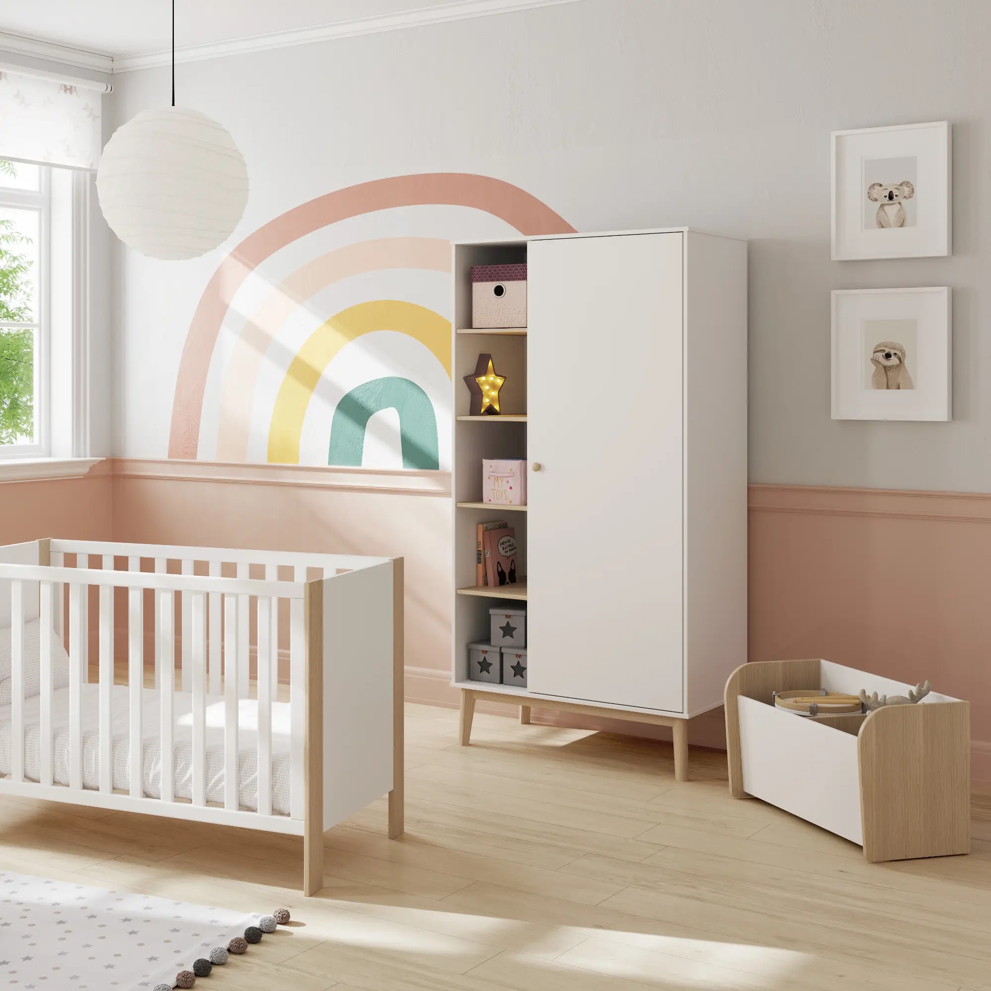 El baúl Esteban 2H blanco/cera blanca es un mueble de diseño nórdico con líneas sencillas y atemporales que aporta funcionalidad a cualquier espacio. Dispone de dos huecos amplios para almacenamiento, permitiendo guardar juguetes, textiles u otros objetos de forma ordenada.