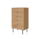 La estructura de este cabezal está cuidadosamente elaborada en chapa de roble natural, lo que le confiere una base robusta y una calidez inherente. Sus frentes presentan una combinación única de la chapa de roble natural con una distintiva raya fresada lacada en negro. Este contraste entre la veta suave del roble y la línea definida en negro crea un diseño visualmente atractivo y contemporáneo, ideal para ambientes que buscan sofisticación y originalidad.