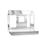 El cajón para cama SIA-2 en acabado blanco, gris claro y gris oscuro es un accesorio funcional diseñado para colocarse bajo la cama, ofreciendo almacenamiento adicional de manera discreta y práctica. Su diseño moderno y combinaciones de colores permiten integrarlo fácilmente en dormitorios juveniles o infantiles.