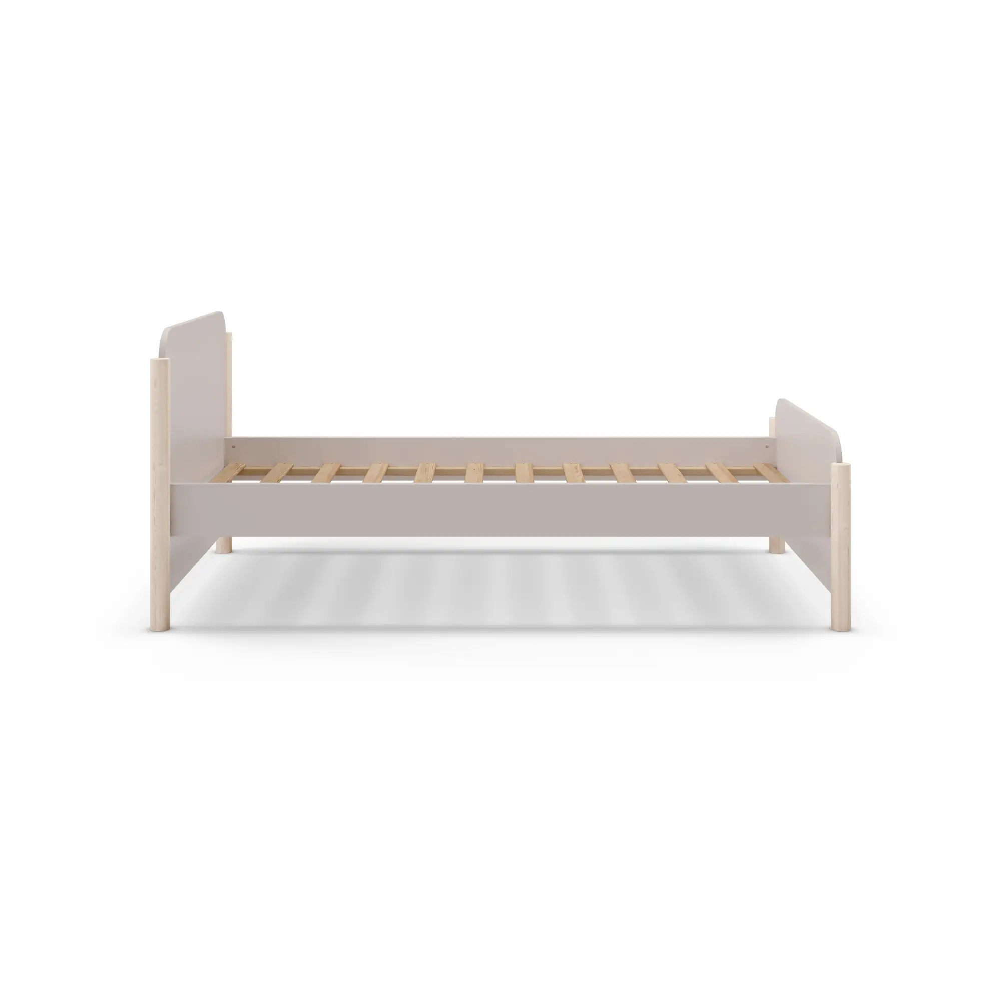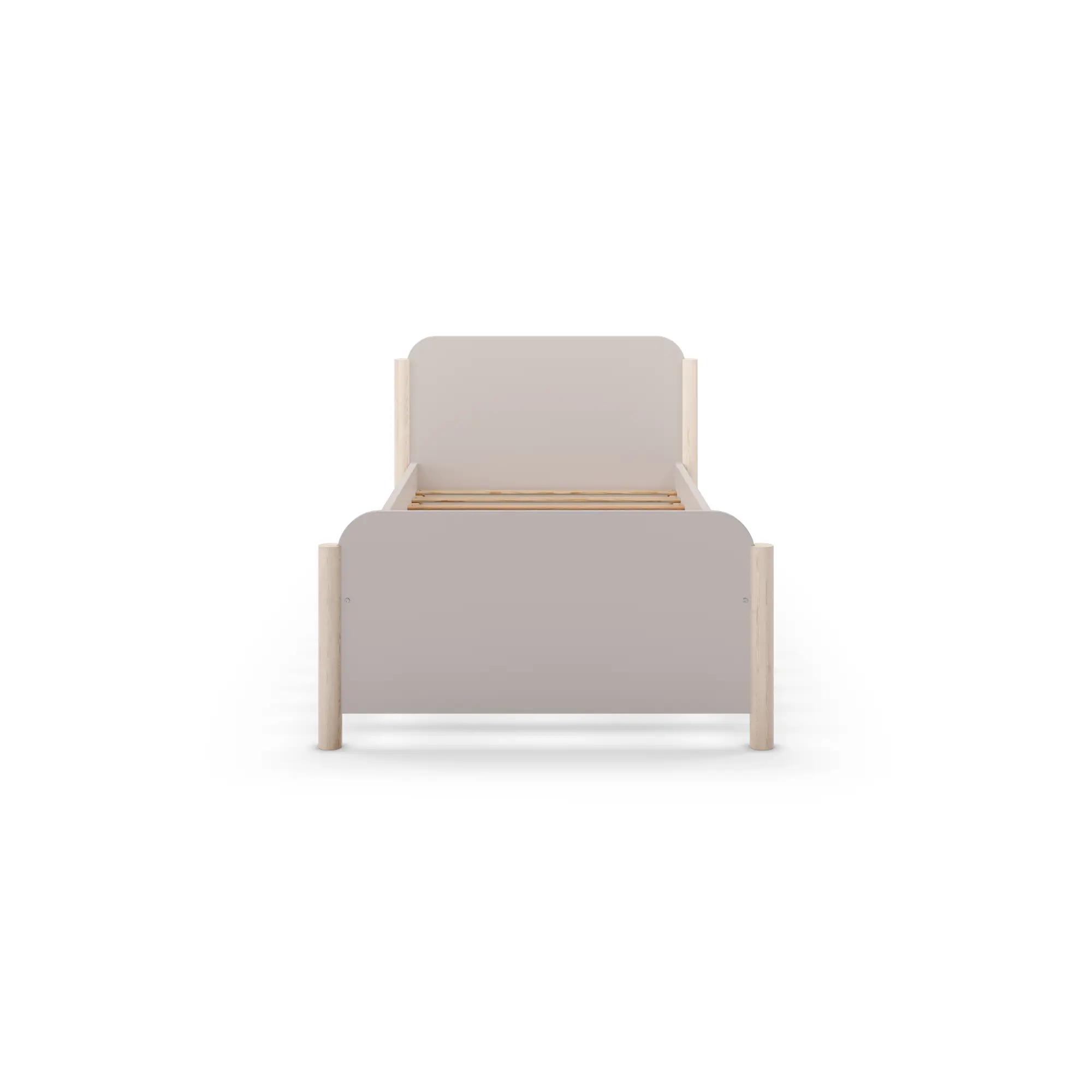 Cama individual en crema y cera blanca de estilo nórdico pensada para dormitorios juveniles, funcional y fácil de integrar en cualquier espacio