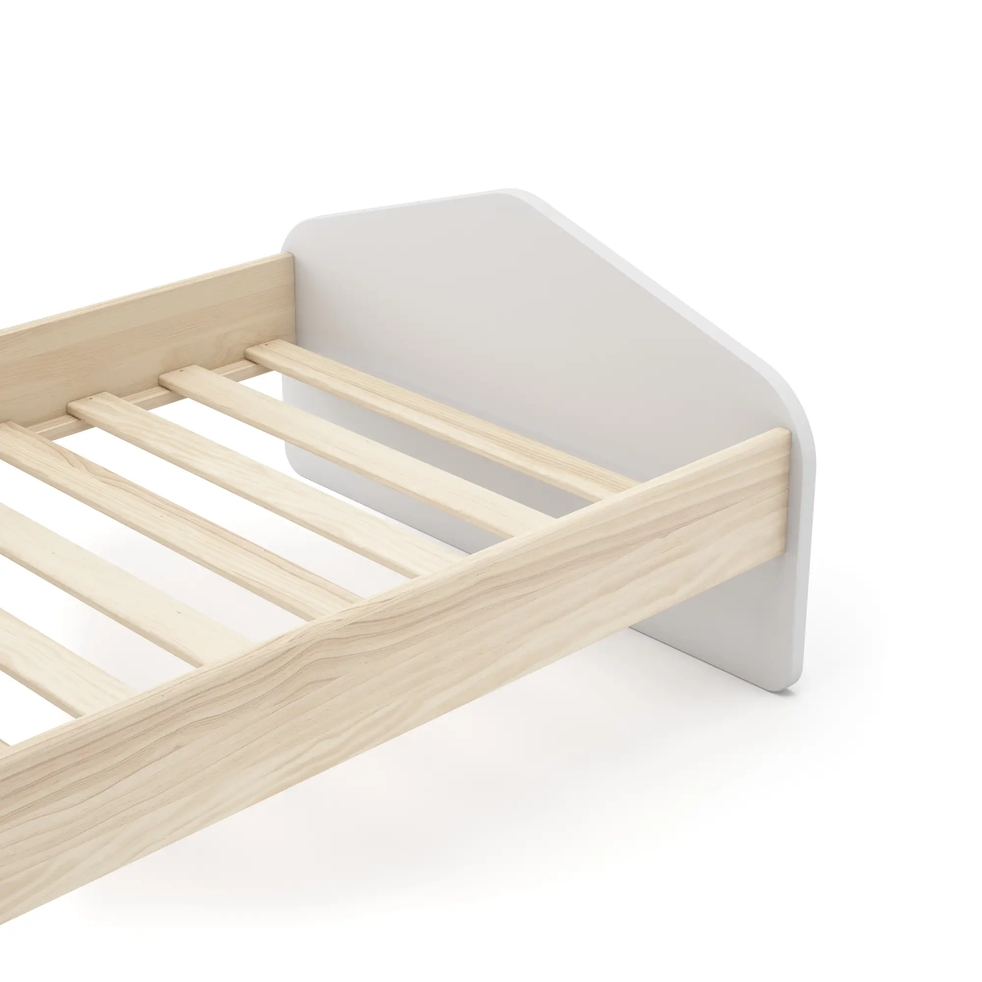Cama individual blanca y cera blanca de estilo nórdico pensada para dormitorios juveniles con diseño funcional y confortable.
