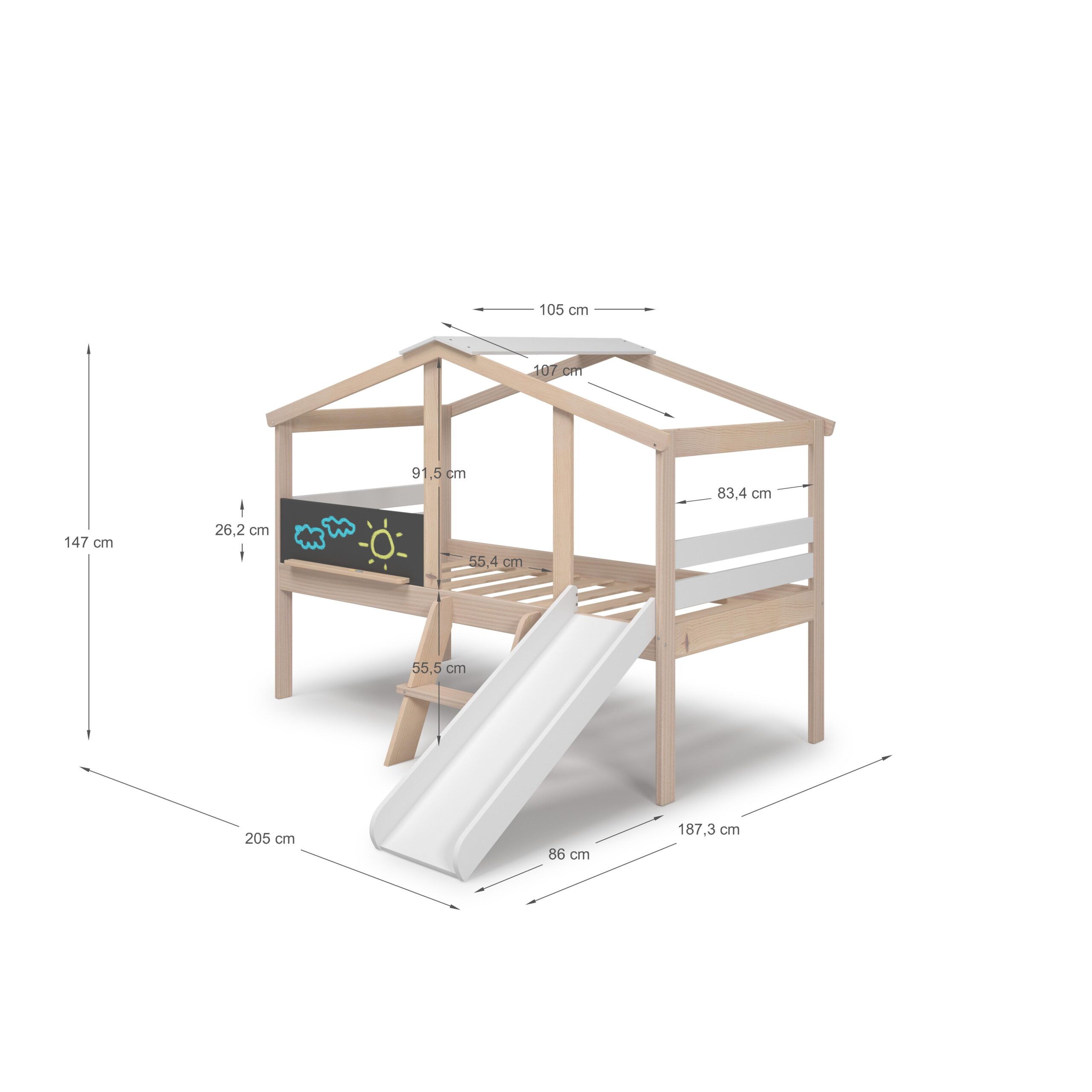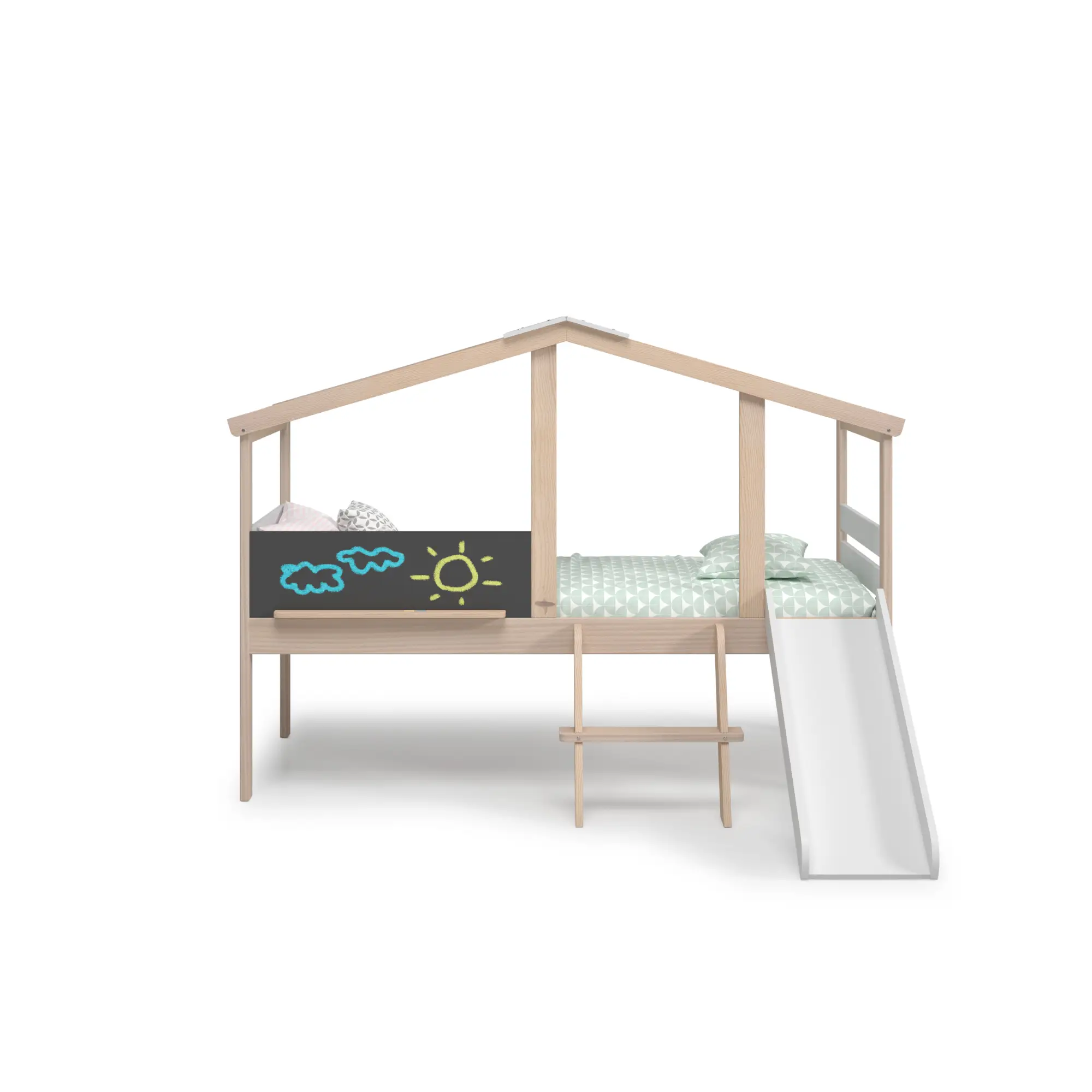 Cama 0.90 Tobogán en blanco y cera blanca, práctica y original, perfecta para combinar descanso y juego en dormitorios infantiles.