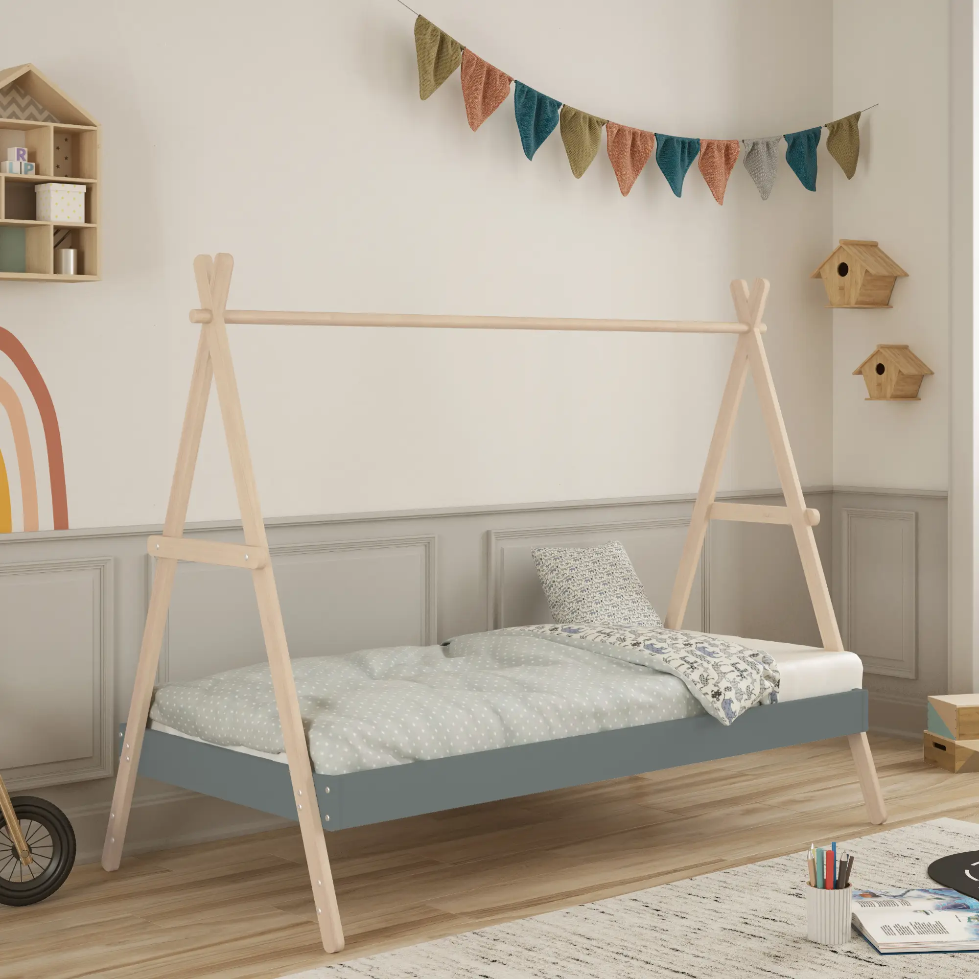 La cama cabaña Trufa 90×200 en acabado cera blanca y verde es una cama infantil de estilo nórdico con estructura tipo casita que aporta un ambiente acogedor y lúdico al dormitorio. Su combinación de colores aporta frescura y modernidad, ideal para dormitorios infantiles o juveniles.