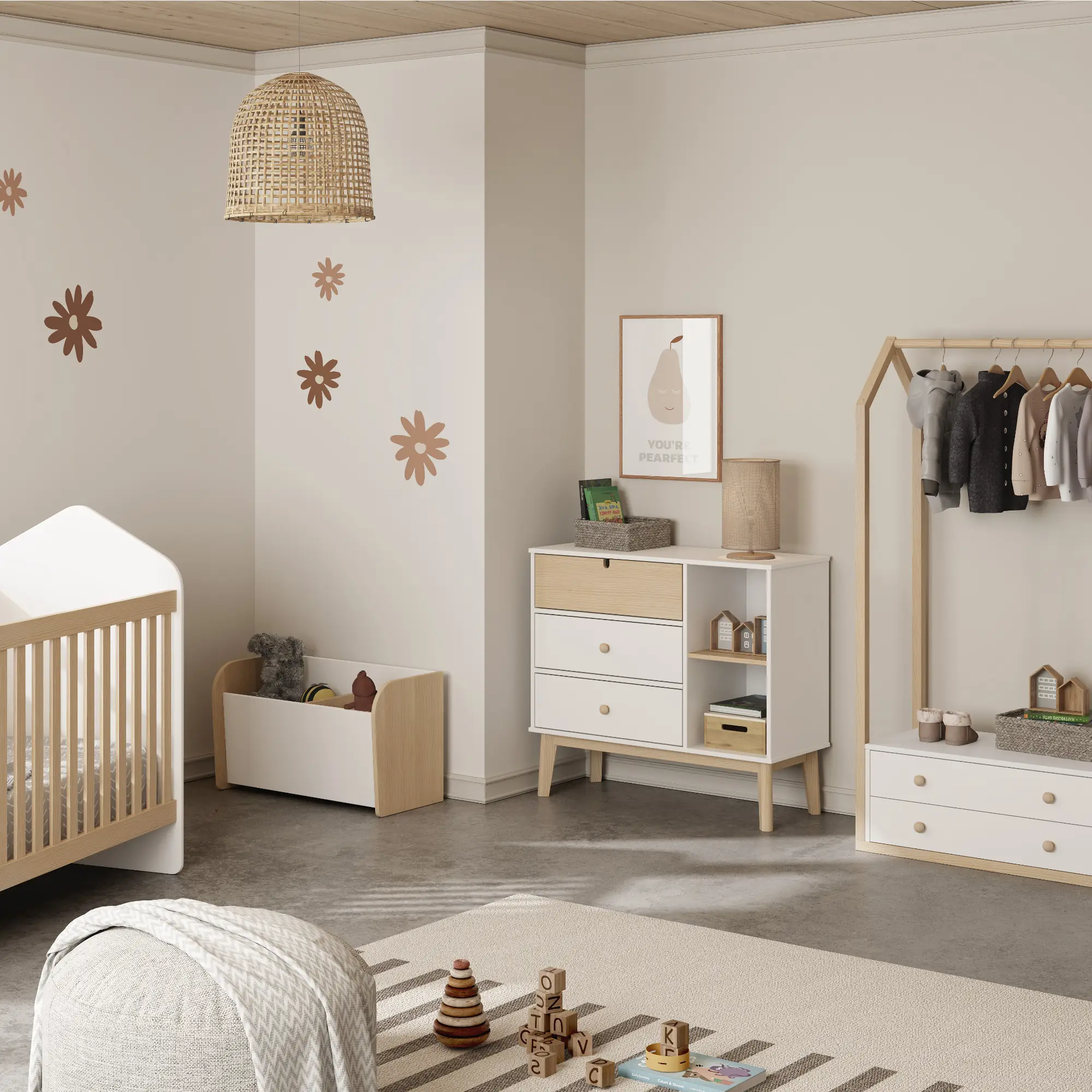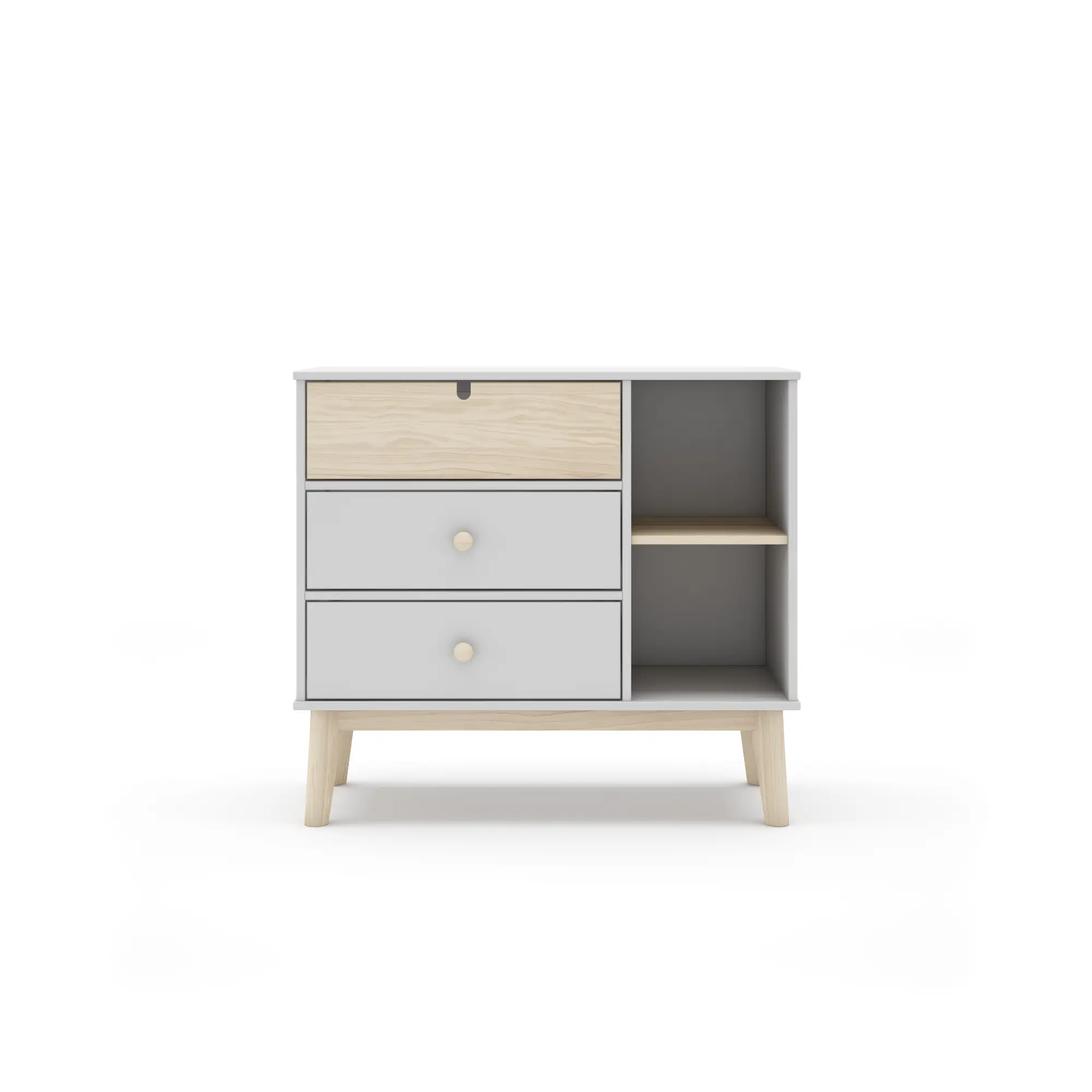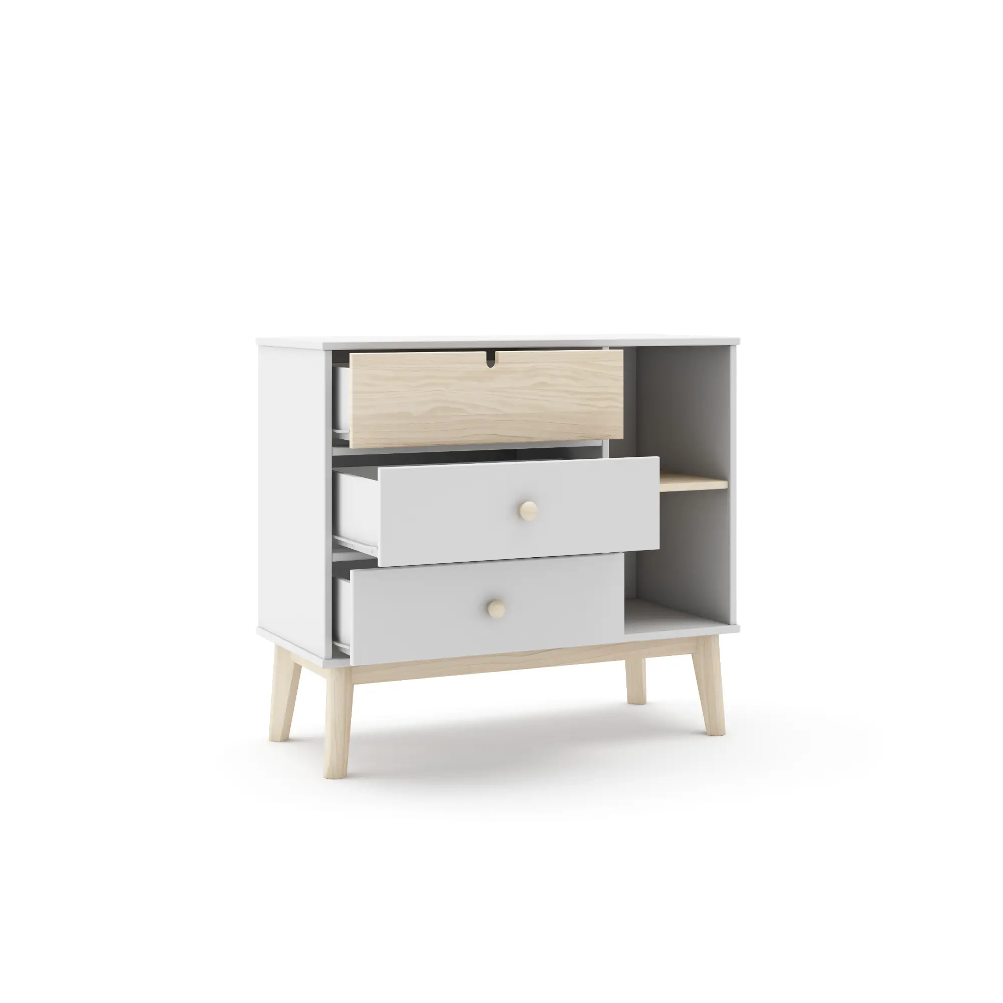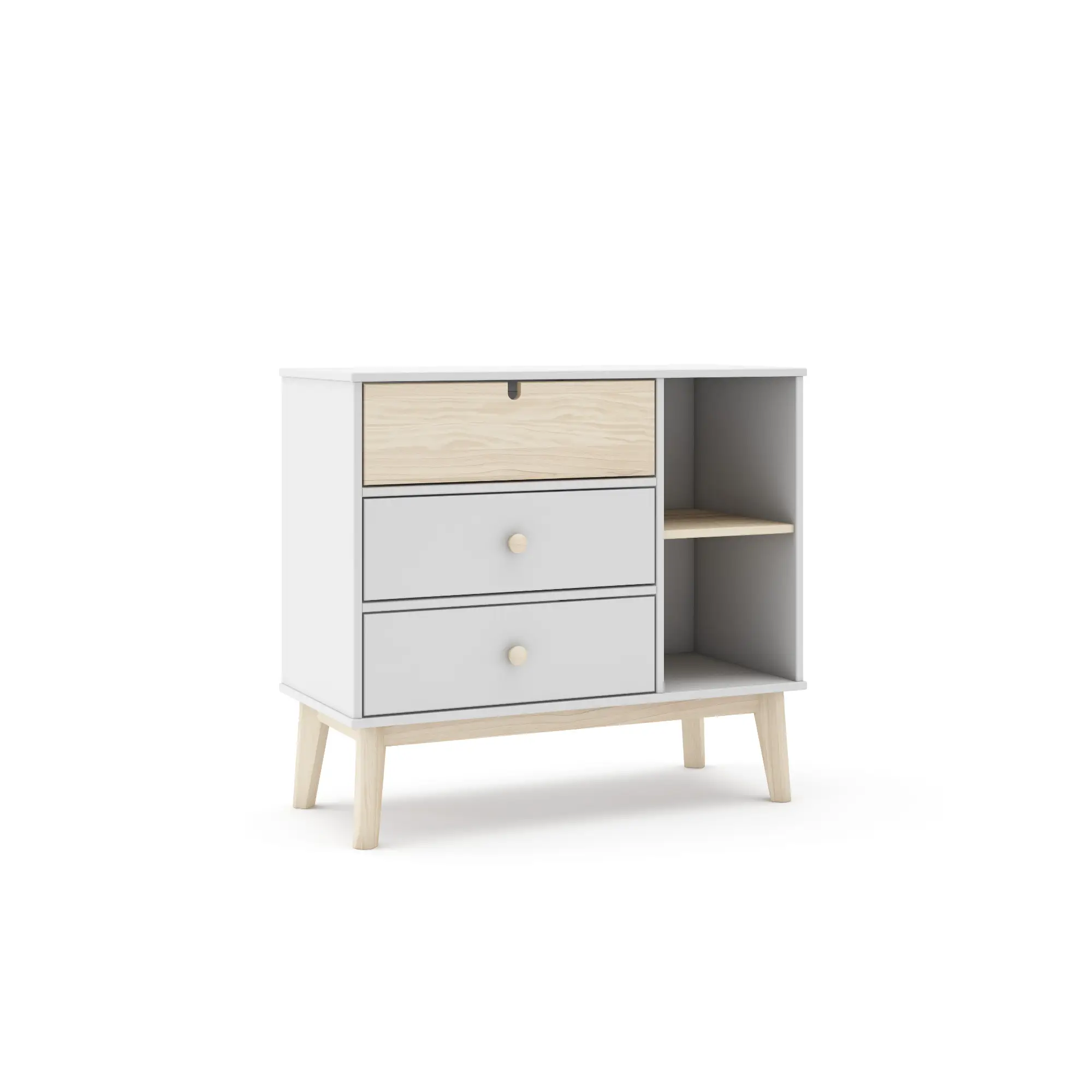 Cómoda Estefanía 3C2H en blanco y cera blanca, práctica y funcional, ideal para organizar el dormitorio con un estilo limpio.