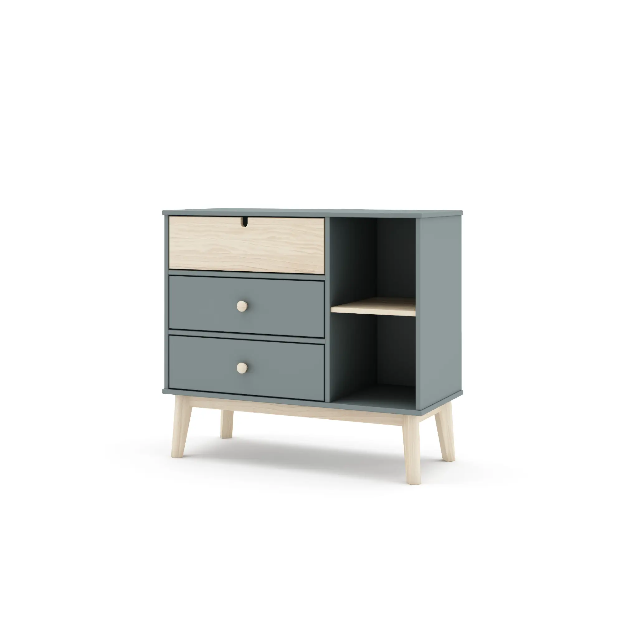 La Cómoda Estefanía 3C2H Verde Kaki/Cera Blanca es una pieza práctica y versátil que combina almacenaje cerrado y abierto para adaptarse al día a día. Su acabado en verde kaki aporta un toque actual, mientras que la cera blanca equilibra el conjunto con un estilo más ligero.