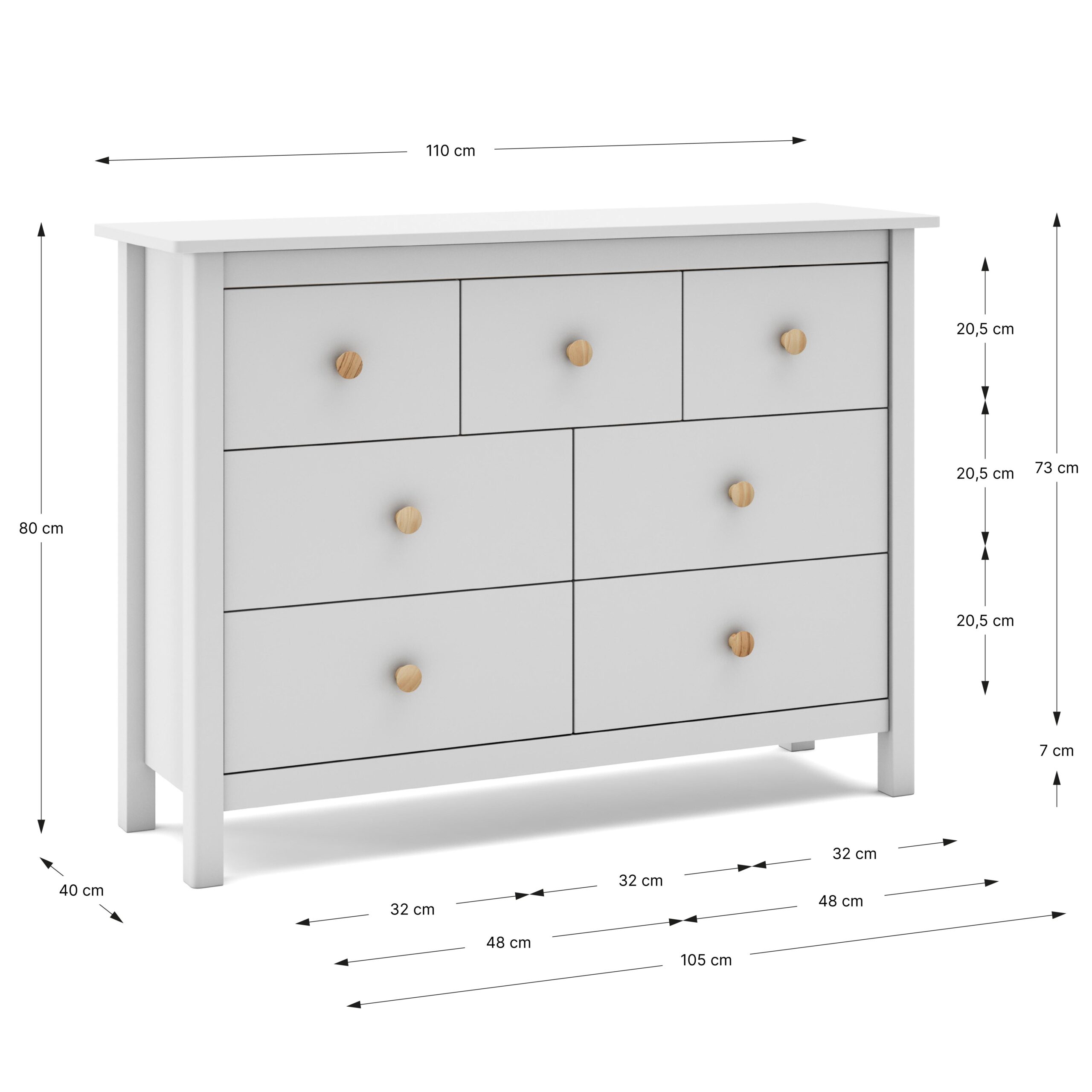 La Cómoda Max 4+3C Blanco es una solución completa de almacenamiento para dormitorios, combinando cajones de distintos tamaños para una organización más versátil. Su acabado en blanco aporta luminosidad y facilita su integración en cualquier estilo de decoración.