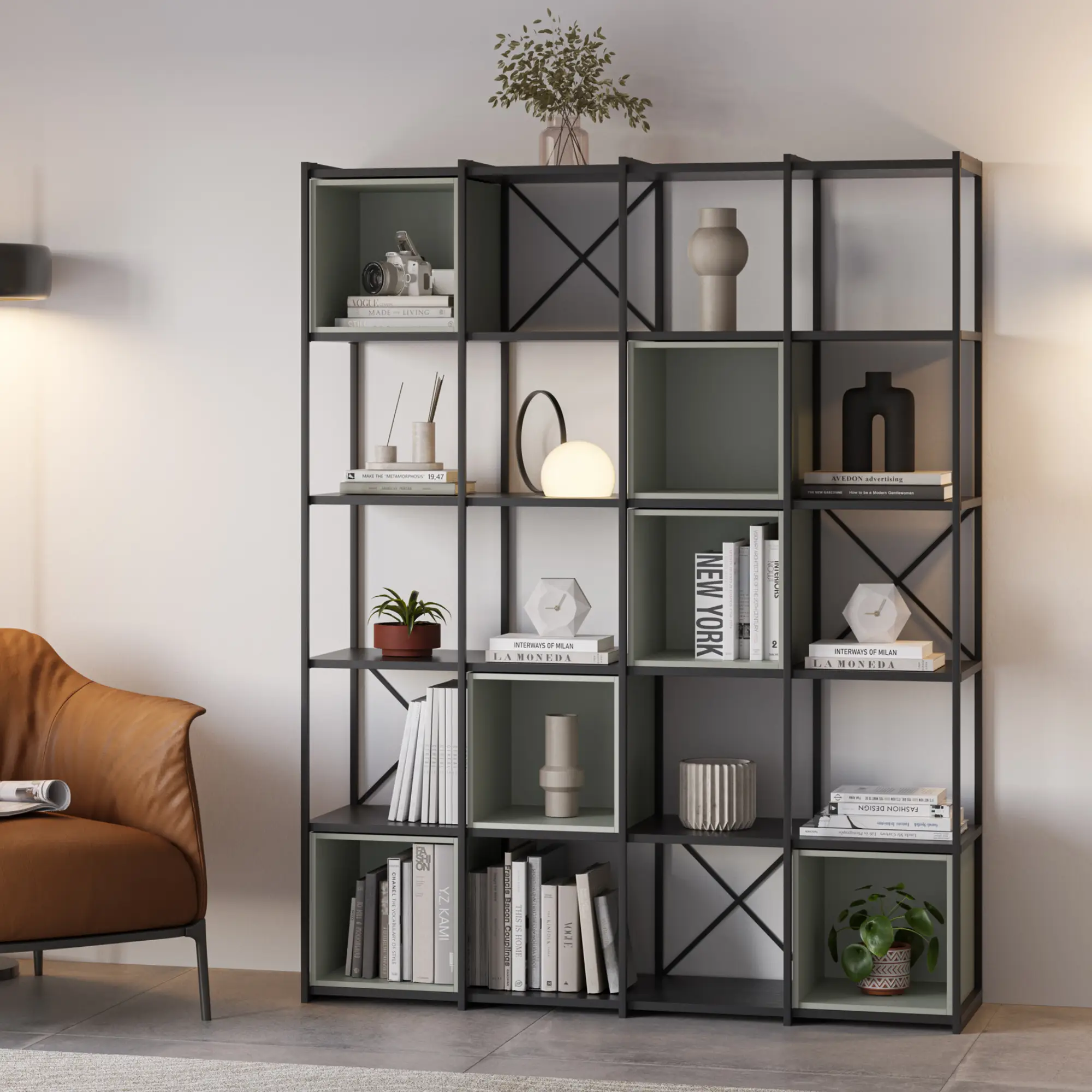 ESTANTERIA ANYA 140CM NEGRO CUBO VERDE