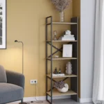 La estantería Ara de 58 cm en acabado roble y negro silky destaca por su diseño moderno y su estructura ligera con estilo industrial. Gracias a sus estantes abiertos y a su estructura metálica, ofrece una solución práctica para organizar libros, decoración o accesorios en diferentes espacios del hogar.
