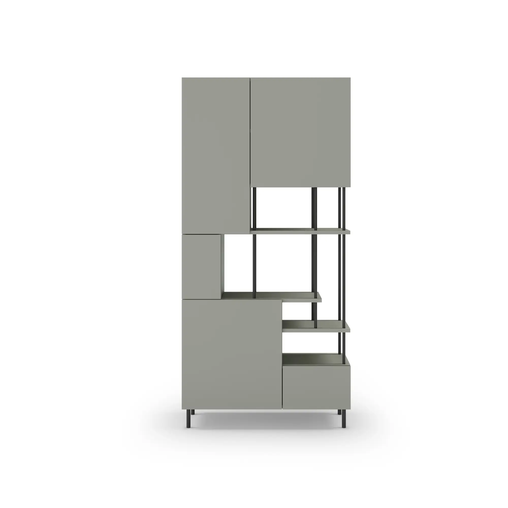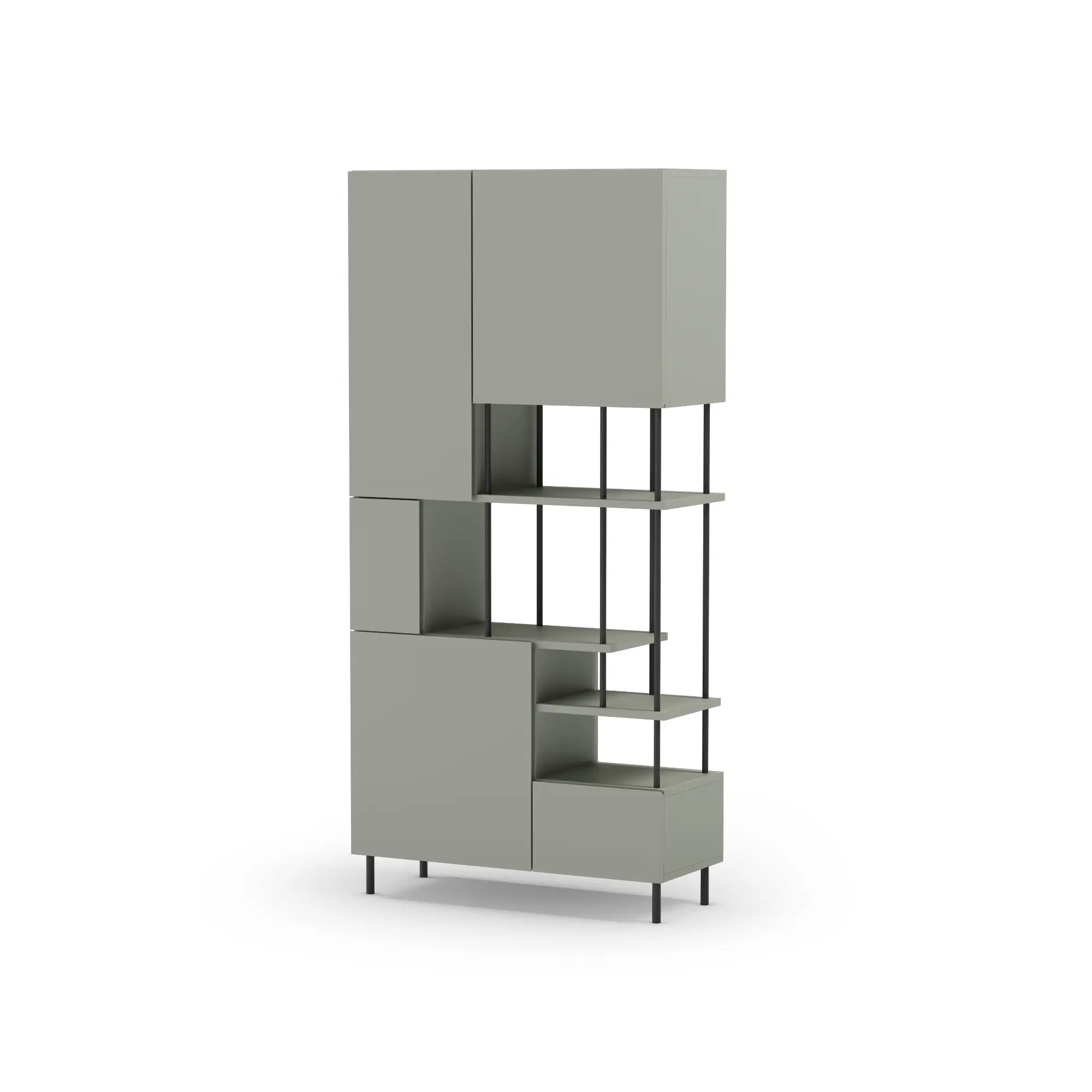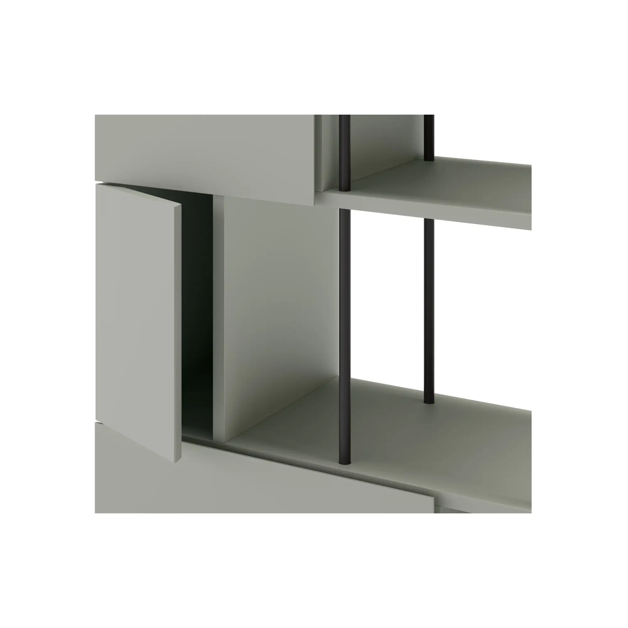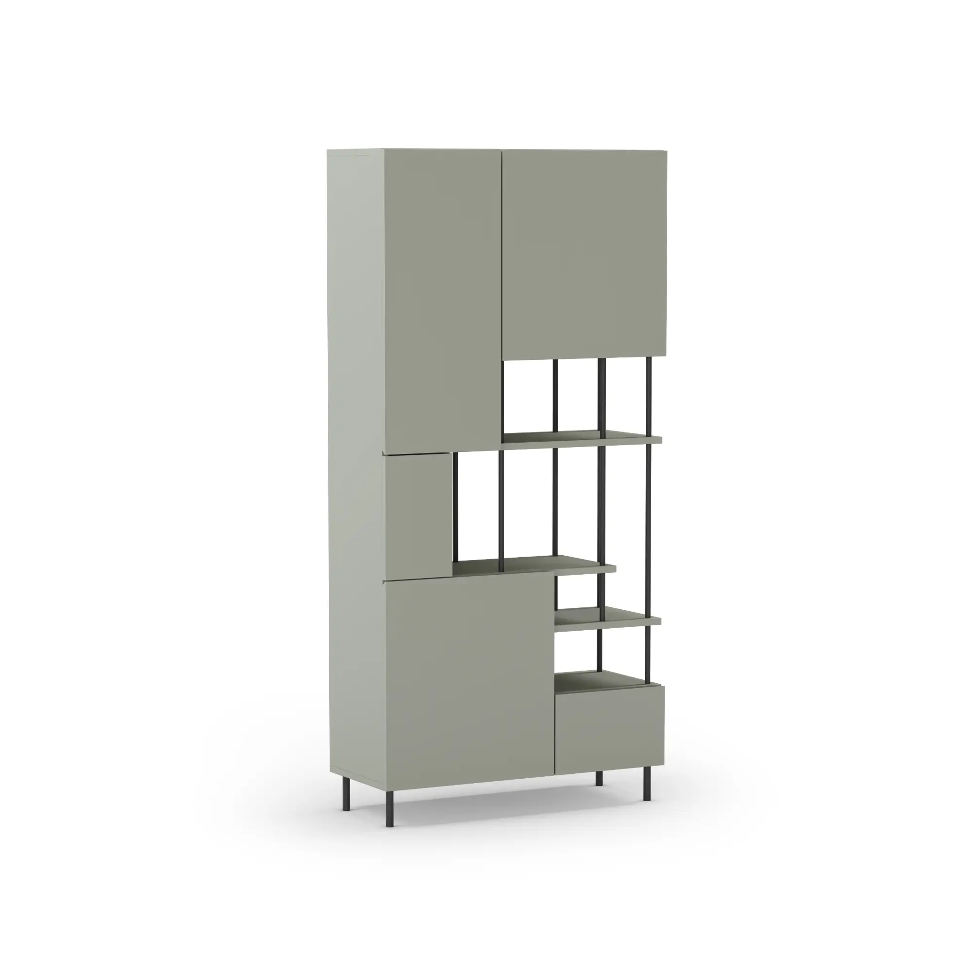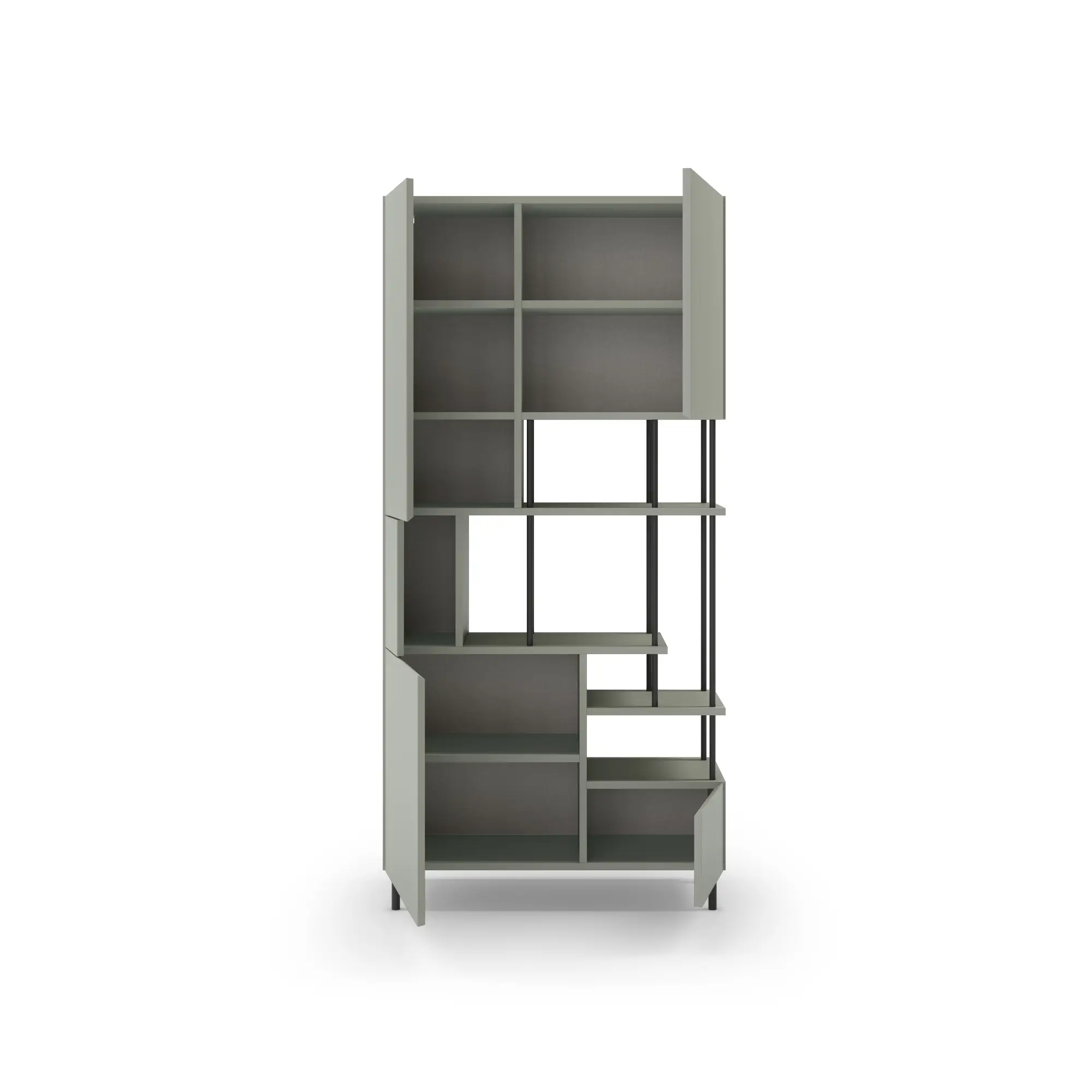 Estantería Perla de estilo moderno, con estructura negra y 5 estantes verdes para organizar y dar un toque fresco a tu espacio.