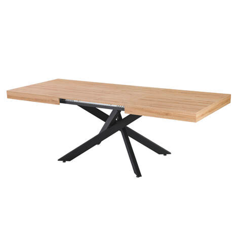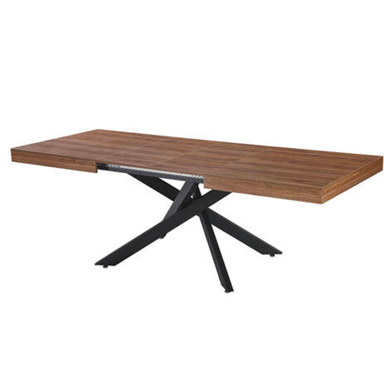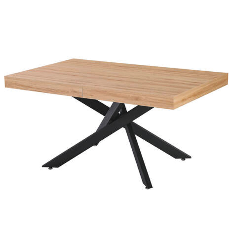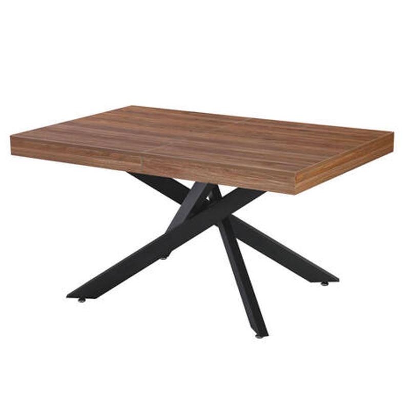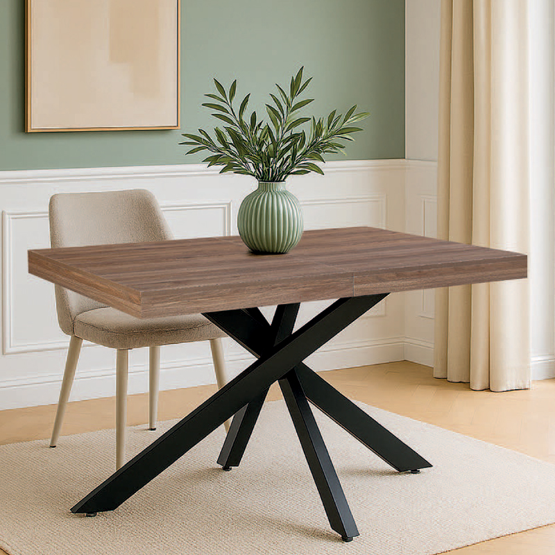 Mesa extensible con sobre de madera acabado en melamina ELEGANT de alta resistencia y fácil limpieza. Cuenta con sólidas patas metálicas en elegante negro mate para una estética moderna y gran estabilidad. Ideal para adaptarse a cualquier reunión.