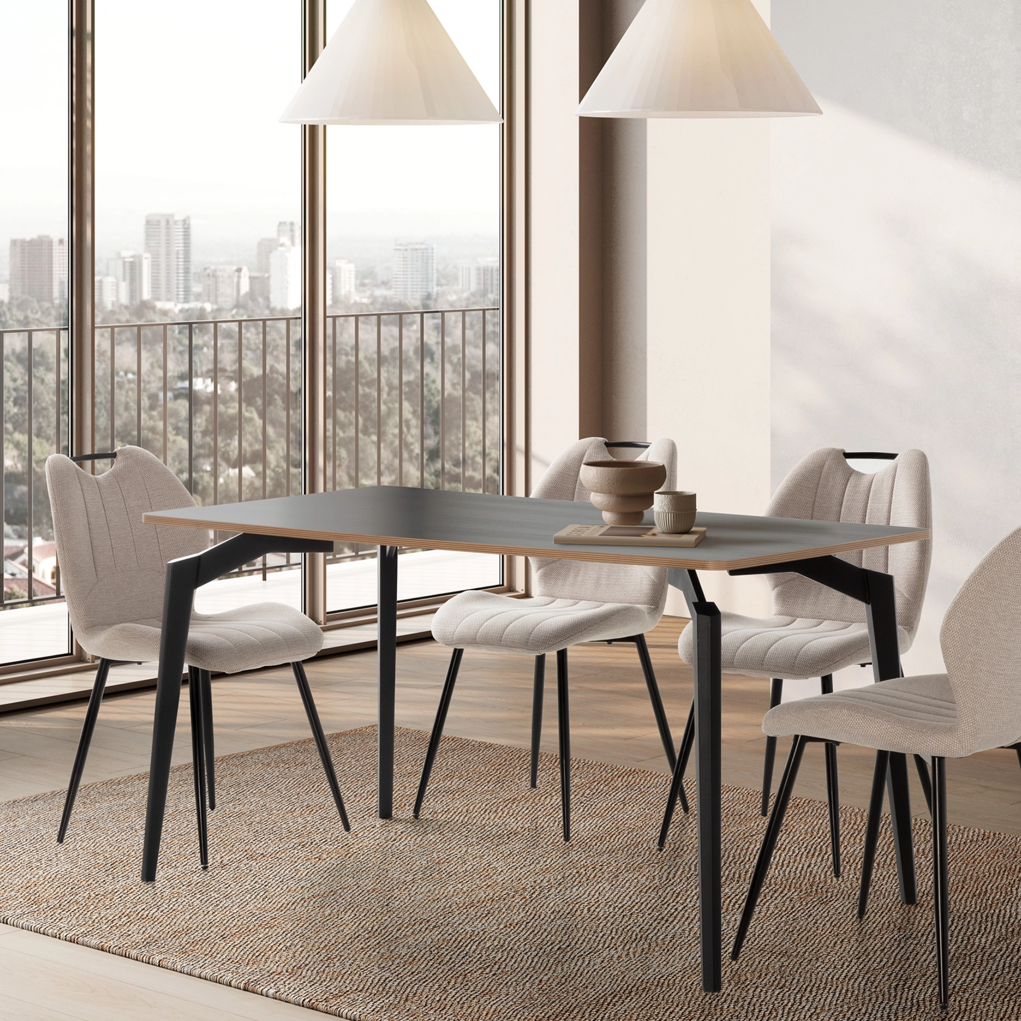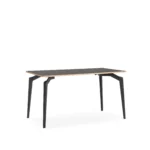 La Mesa Rectangular Denia de Marckeric (140 cm) es una pieza de diseño nórdico-industrial que destaca por su inteligente juego de contrastes. Combina un sobre en negro mate con el canto de madera contrachapada vista, un detalle artesanal que aporta calidez y rompe con la sobriedad del color oscuro.