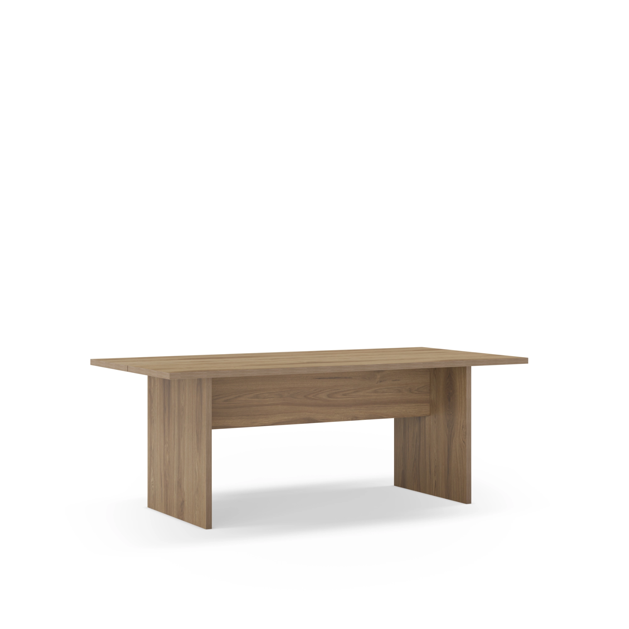 El modelo Loana en Roble-UD se aleja de la frialdad de los materiales sintéticos para abrazar un look orgánico y acogedor. El tablero presenta un veteado detallado que imita la madera de roble natural, con tonos arena y miel que suavizan las líneas rectas y arquitectónicas de la mesa. Es una pieza diseñada para ser el corazón del hogar, invitando a largas sobremesas.