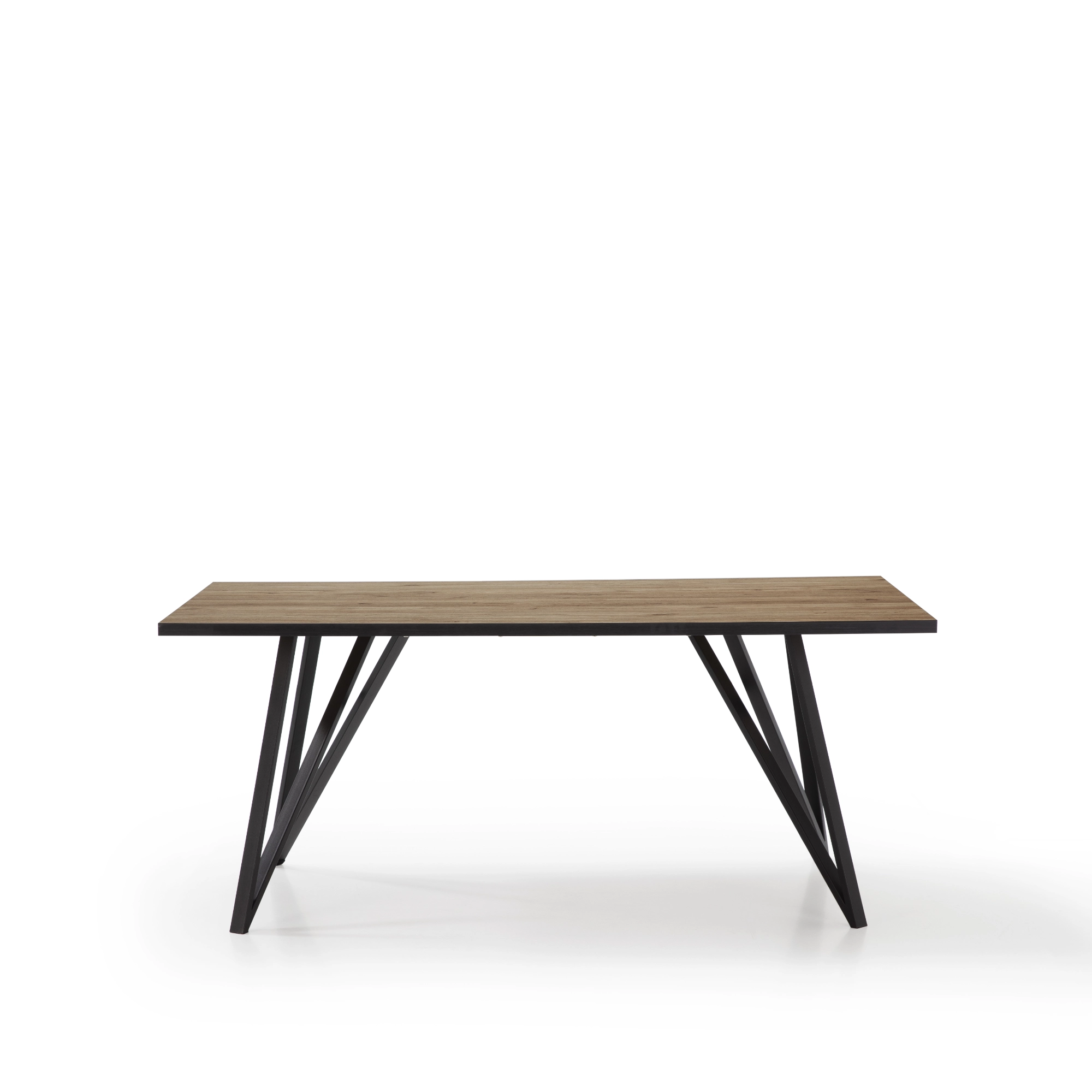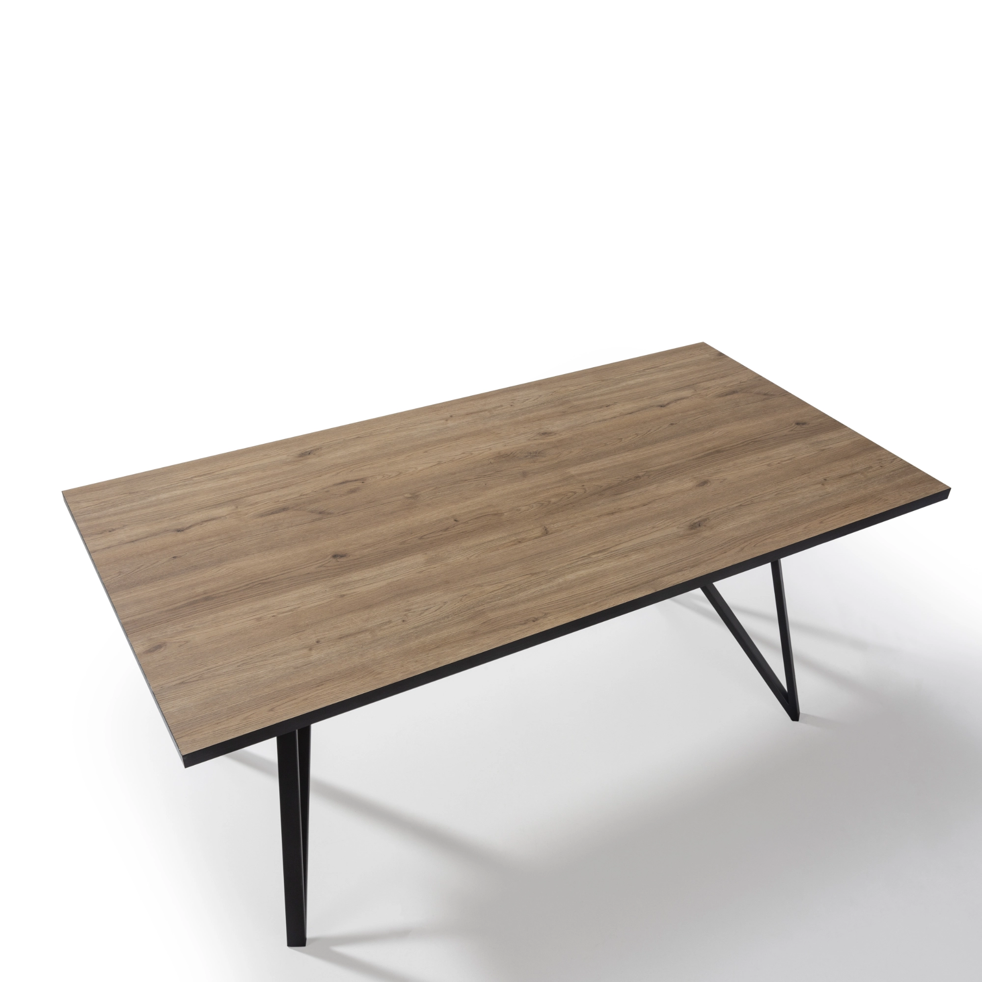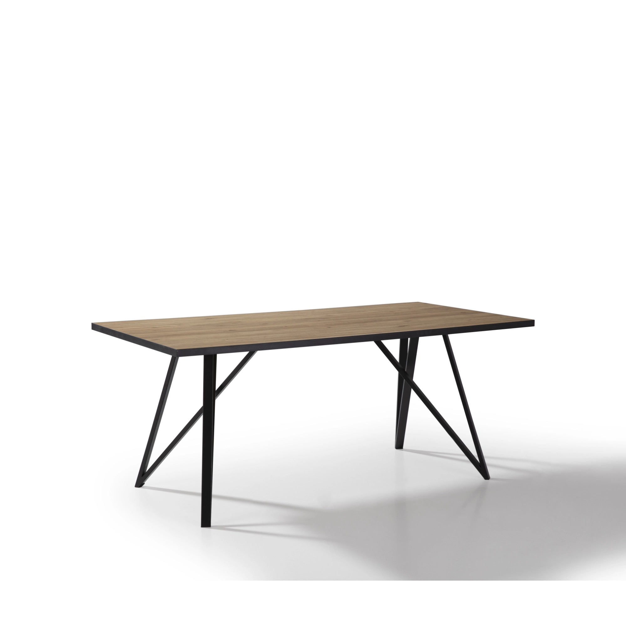 La Myla 180 es una mesa de comedor que destaca por su diseño de contraste industrial y natural. Su tablero en acabado Roble Natural se combina con el exclusivo canto Bocamina (un perfil oscuro que simula profundidad y robustez), logrando una pieza con mucha personalidad y un aire arquitectónico.