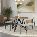 • Pie Central Escultural: Su diseño de base central no solo es estéticamente atractivo, sino que ofrece comodidad total al eliminar las patas molestas para los comensales.