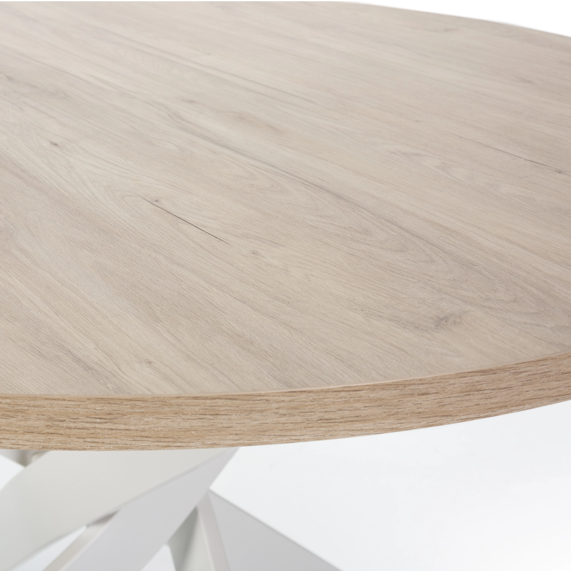 La mesa Ther en acabado Sahara con pata blanca es la máxima expresión del estilo Scandi-Chic. Con sus 120 cm de diámetro, es una pieza diseñada para aportar luminosidad, orden y una sensación de amplitud natural a cualquier comedor o cocina.