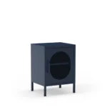 Mesita Diora 1P de color azul es una mesita auxiliar o de noche compacta con un diseño distintivo, ideal para añadir un toque de color y un estilo moderno a cualquier rincón, especialmente en el dormitorio o como auxiliar en el salón.