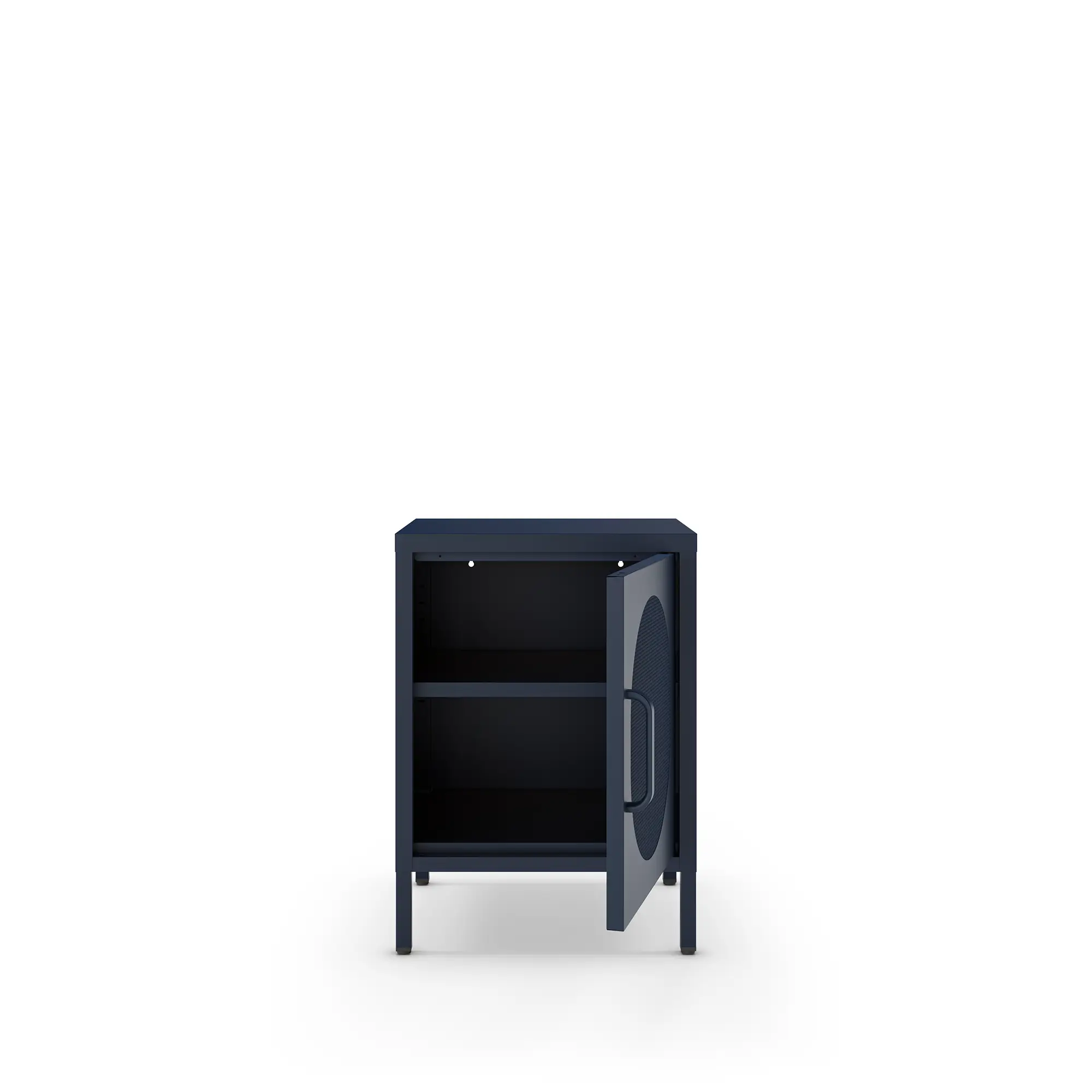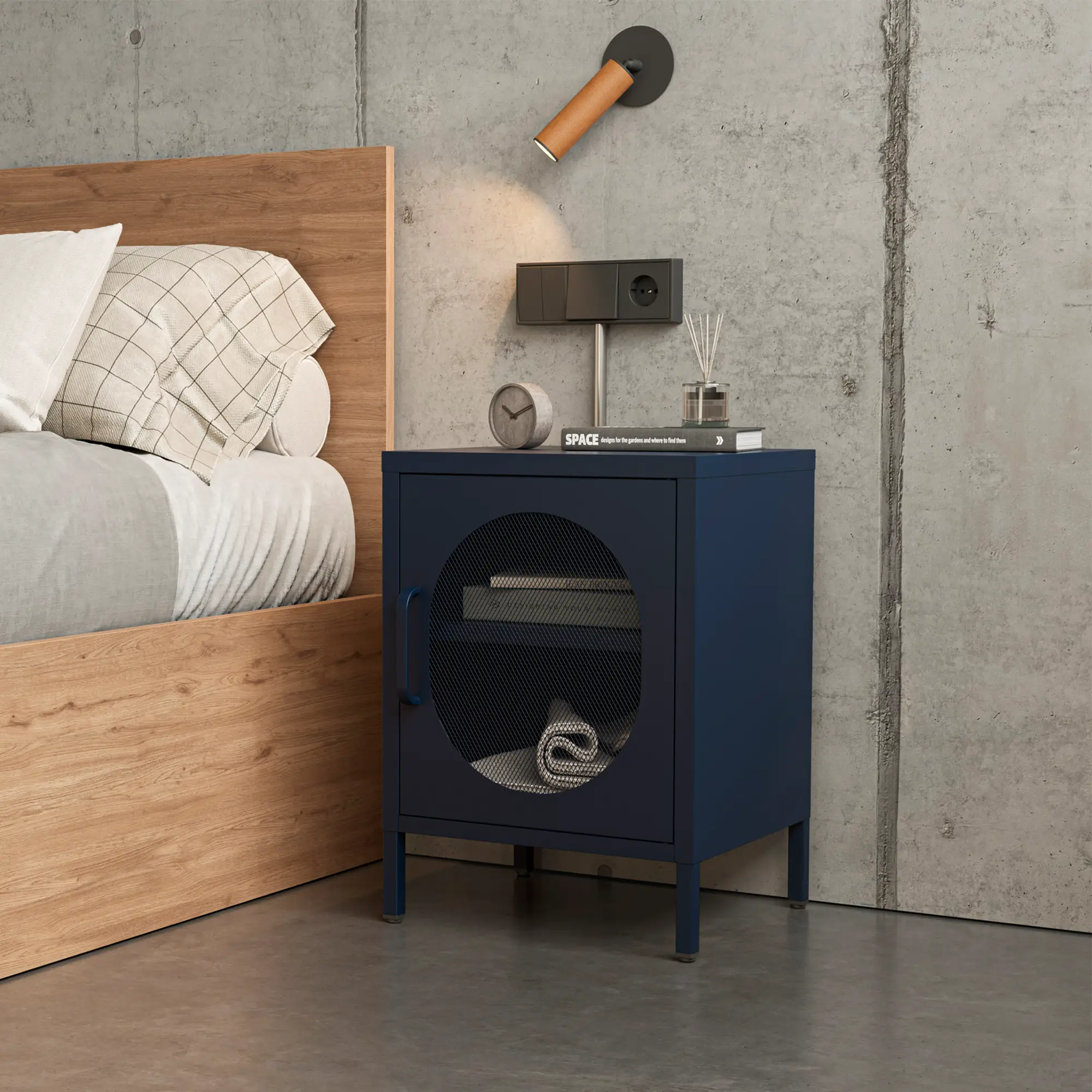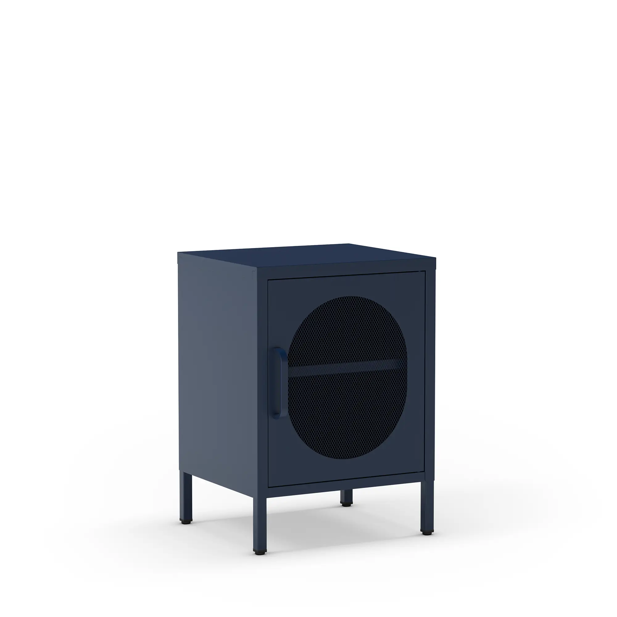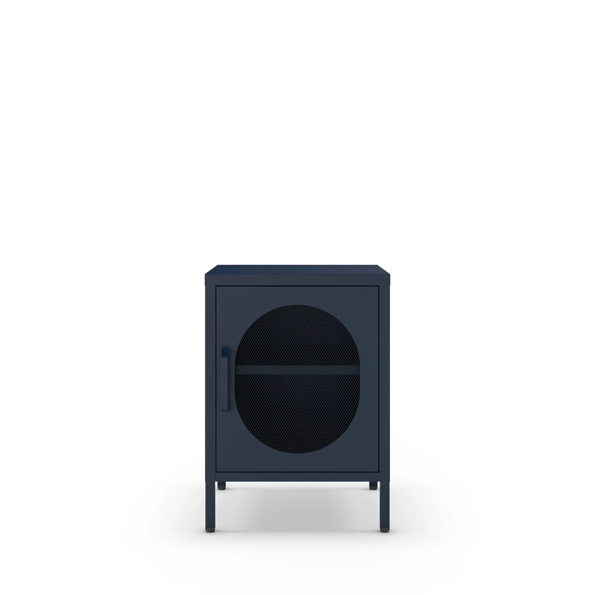 Mesita Diora 1P es una mesita auxiliar moderna y compacta. Destaca por su color azul intenso y su diseño de la puerta. Ofrece almacenamiento cerrado y un toque de diseño único para cualquier rincón.