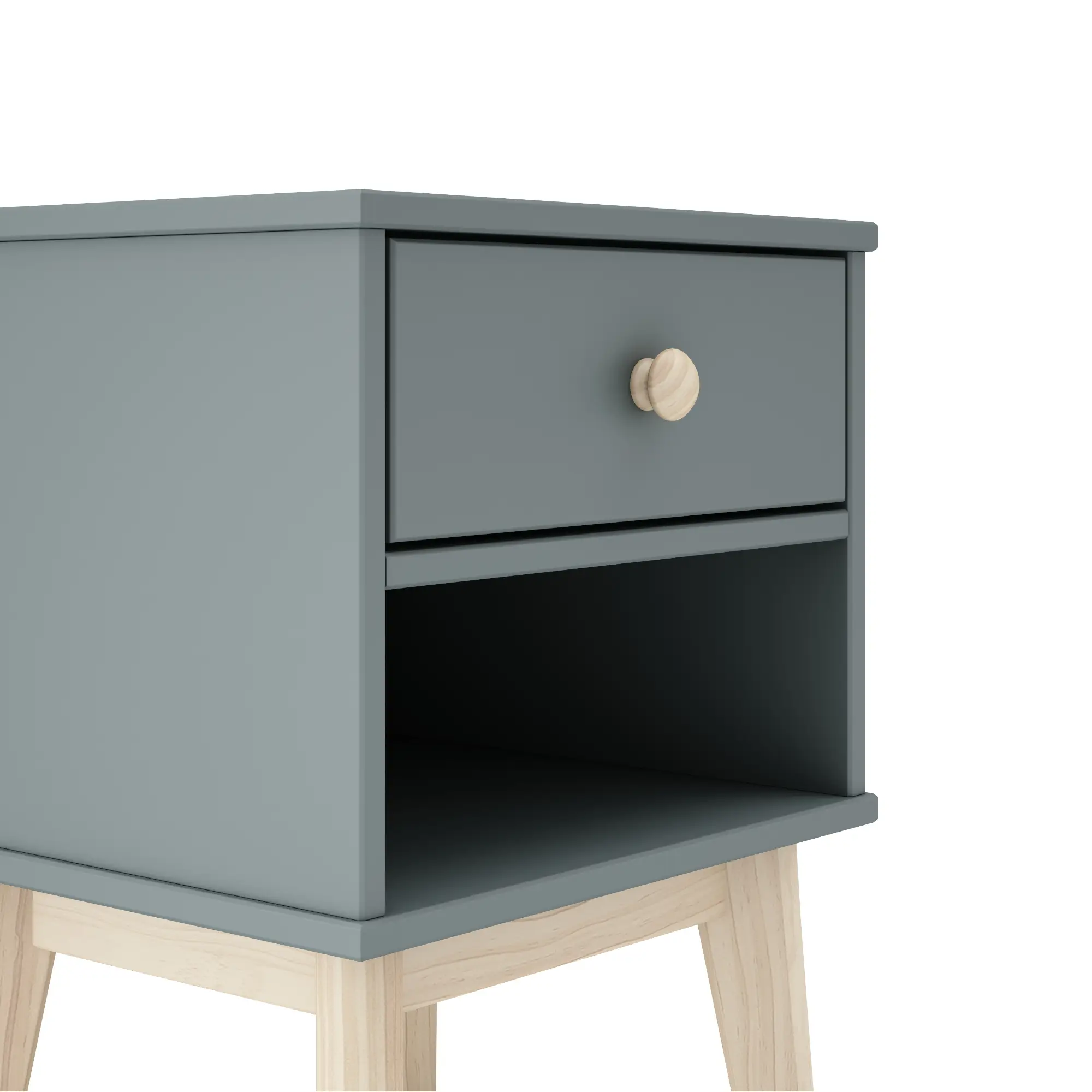 Mesita Esteban 1C1H en verde kaki y cera blanca, práctica y con estilo, ideal para mantener el orden junto a la cama.