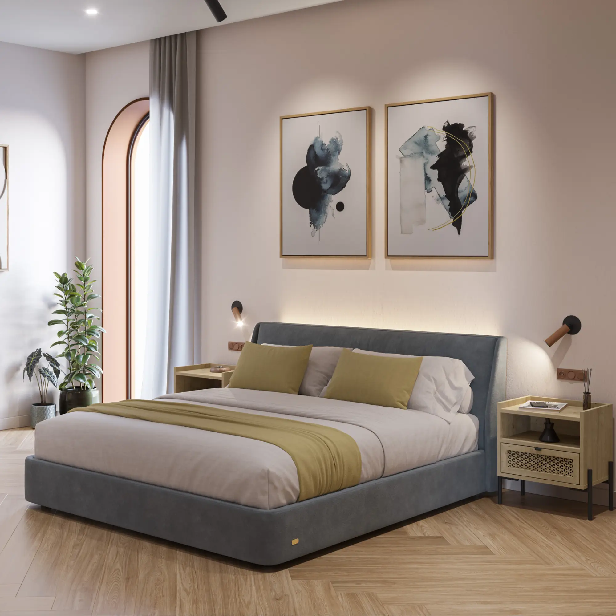Diseño elevado: Sus patas metálicas negras facilitan la limpieza y aportan ligereza visual a la habitación.