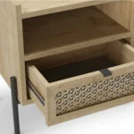 La Mesita de Noche Inca combina la calidez del acabado en roble con la fuerza del estilo industrial. Es una pieza diseñada para ofrecerte funcionalidad extra en poco espacio, aportando un toque moderno y equilibrado a cualquier dormitorio.