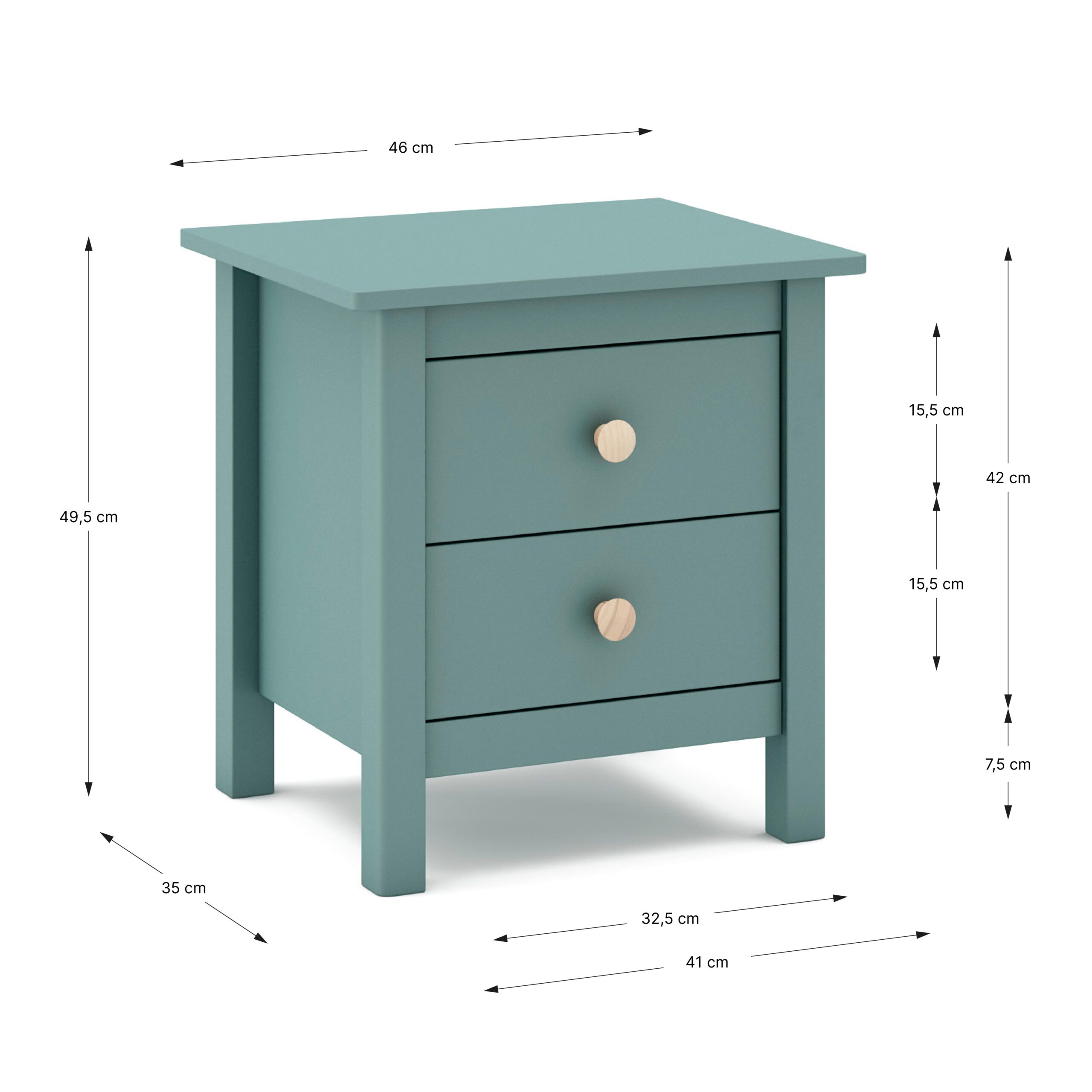 Mesita Max 2C en verde petróleo, práctica y con estilo, ideal para mantener el orden junto a la cama.