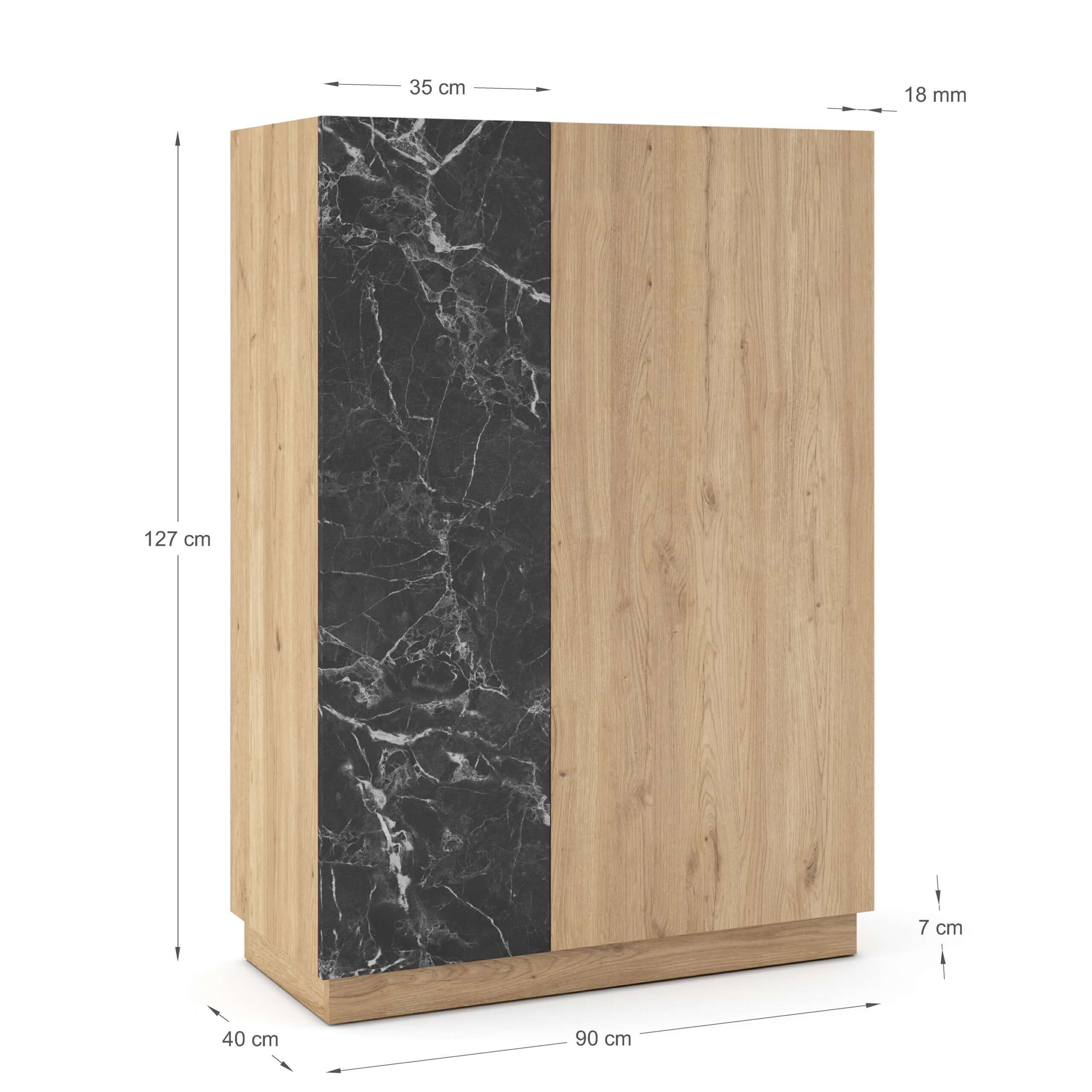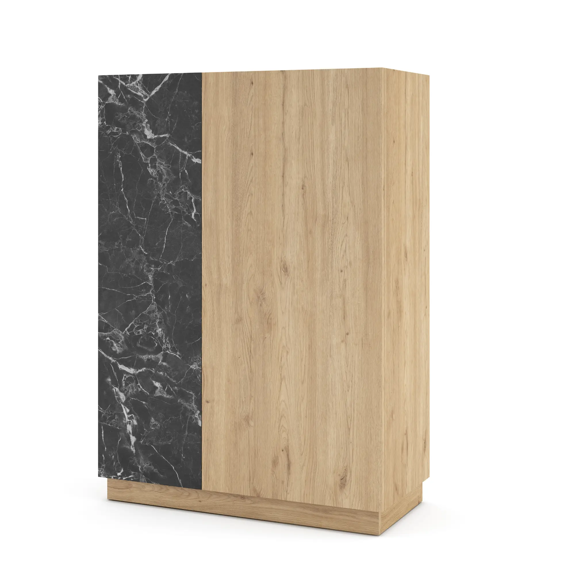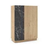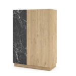 Mueble auxiliar alto Dione con 2 puertas, detalles tipo “sepet” y acabado en mármol Lotus, perfecto para organizar y aportar elegancia a cualquier espacio.