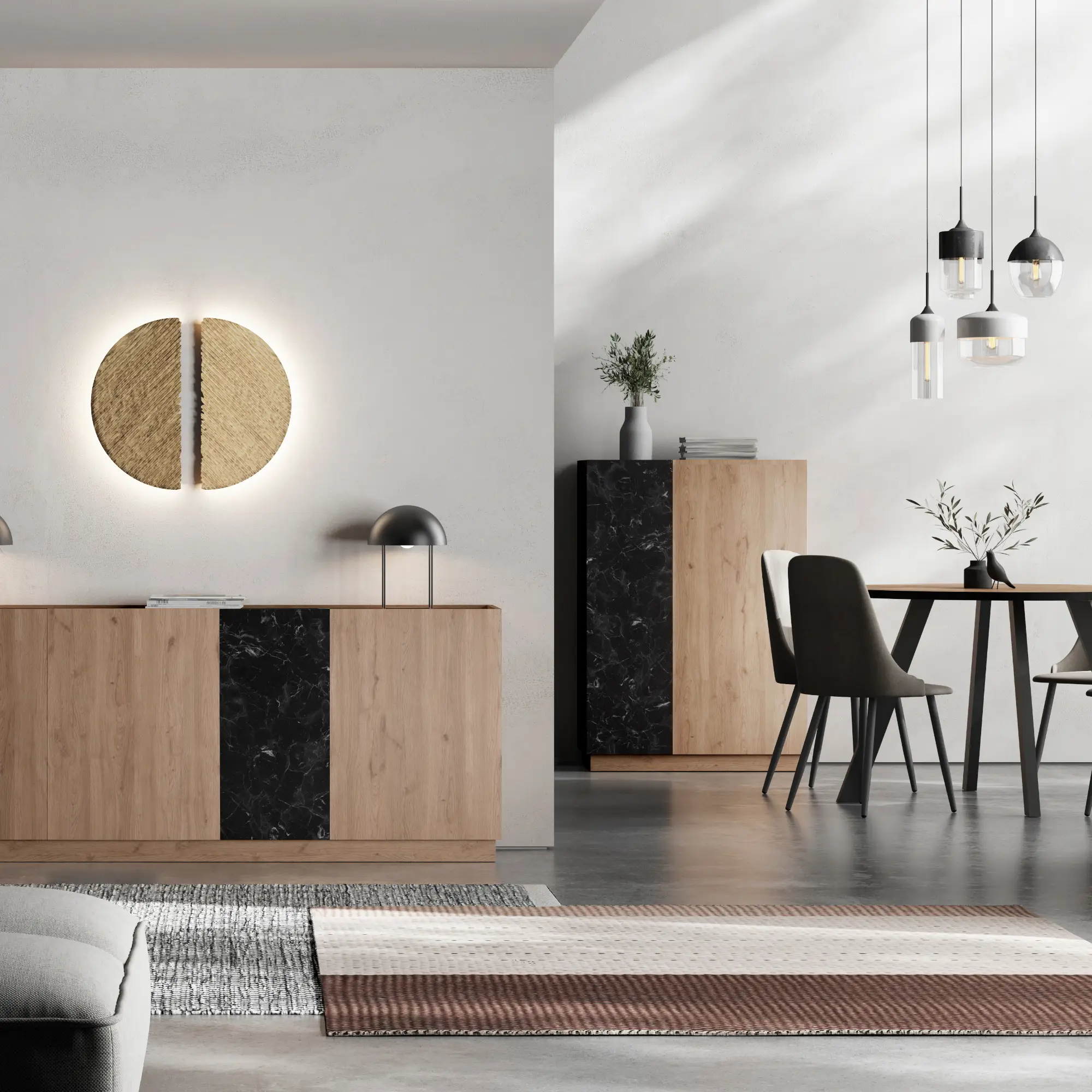 El mueble auxiliar alto Dione combina elegancia y funcionalidad con un diseño moderno que integra detalles tipo “sepet” y acabado en mármol Lotus. Sus 2 puertas ofrecen un espacio práctico para organizar objetos del hogar o elementos decorativos, manteniendo el orden y aportando un toque sofisticado a cualquier estancia. Perfecto para salones, dormitorios o recibidores, Dione une estilo contemporáneo y practicidad en un solo mueble.