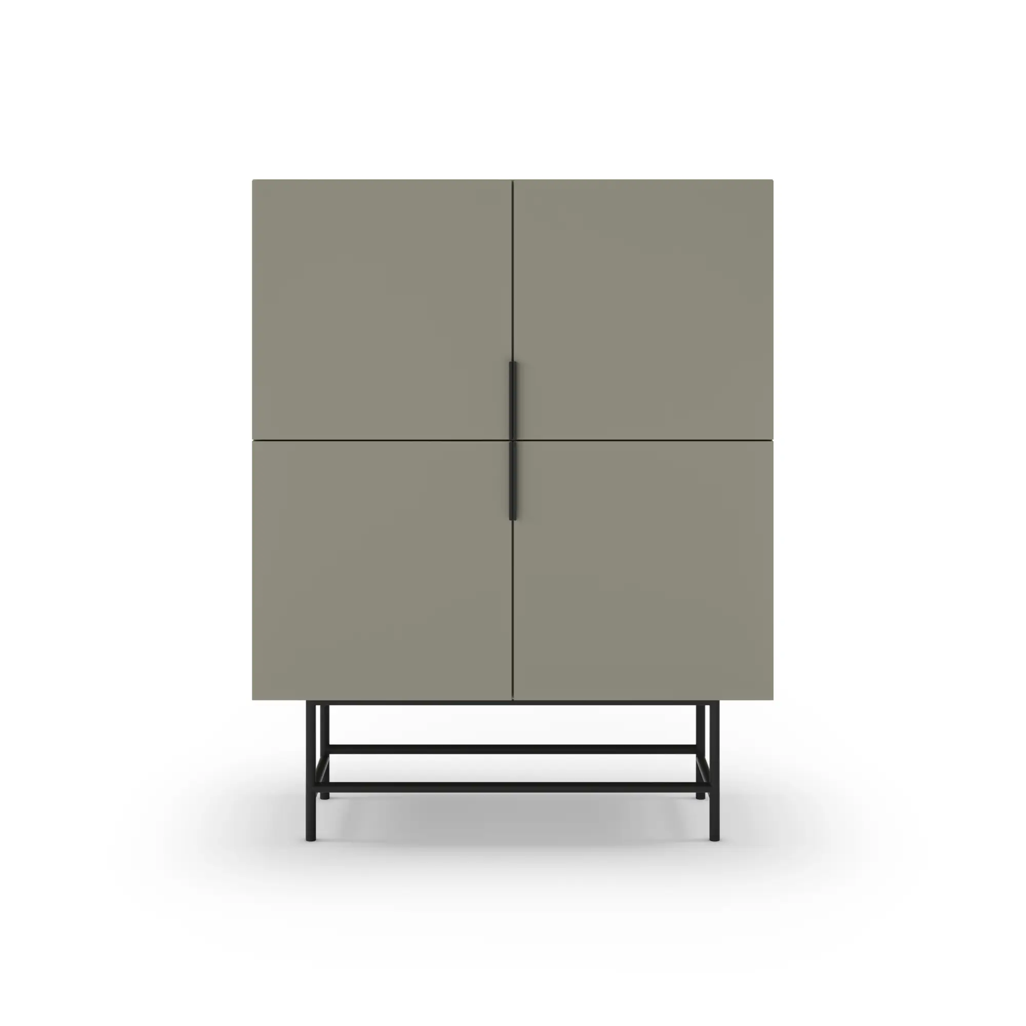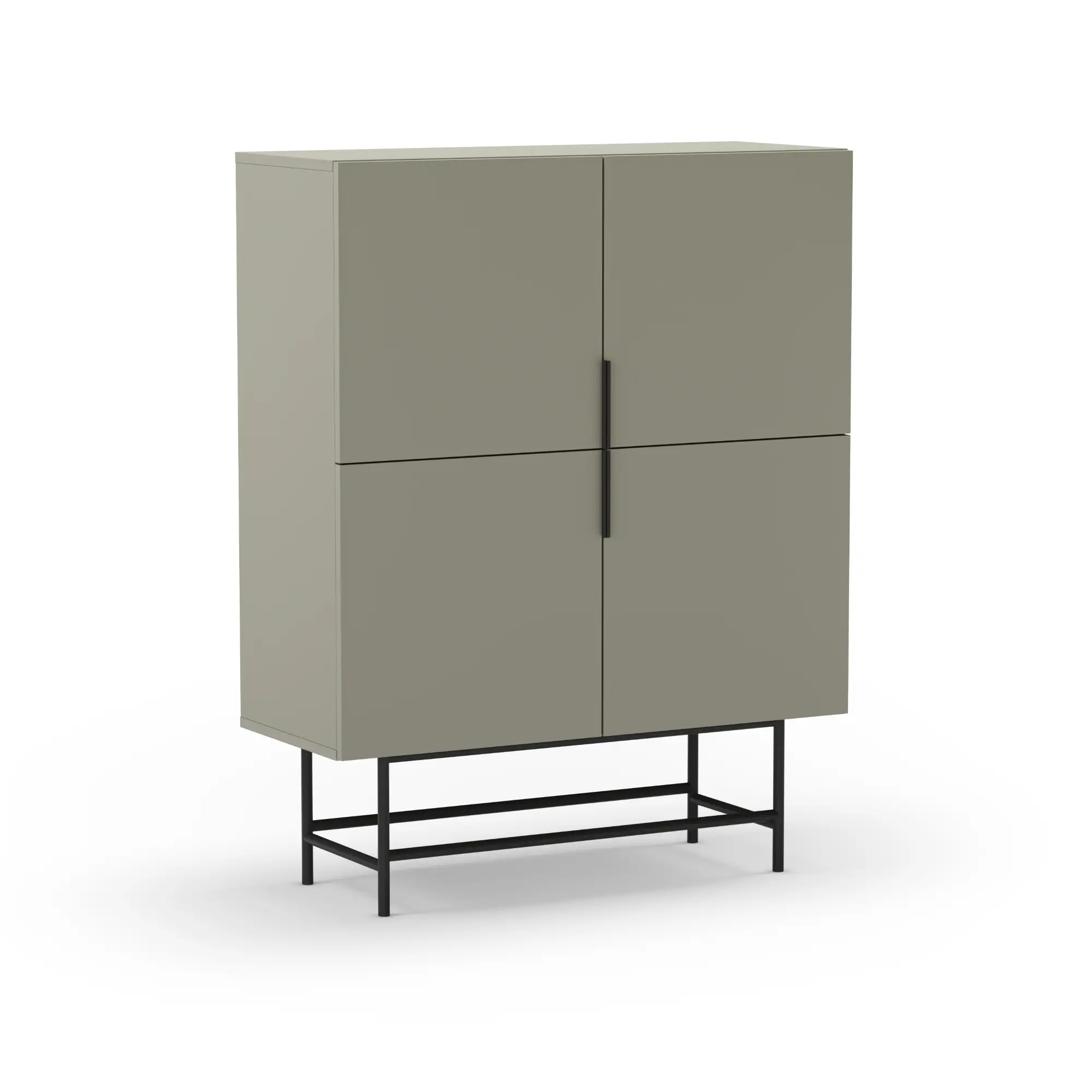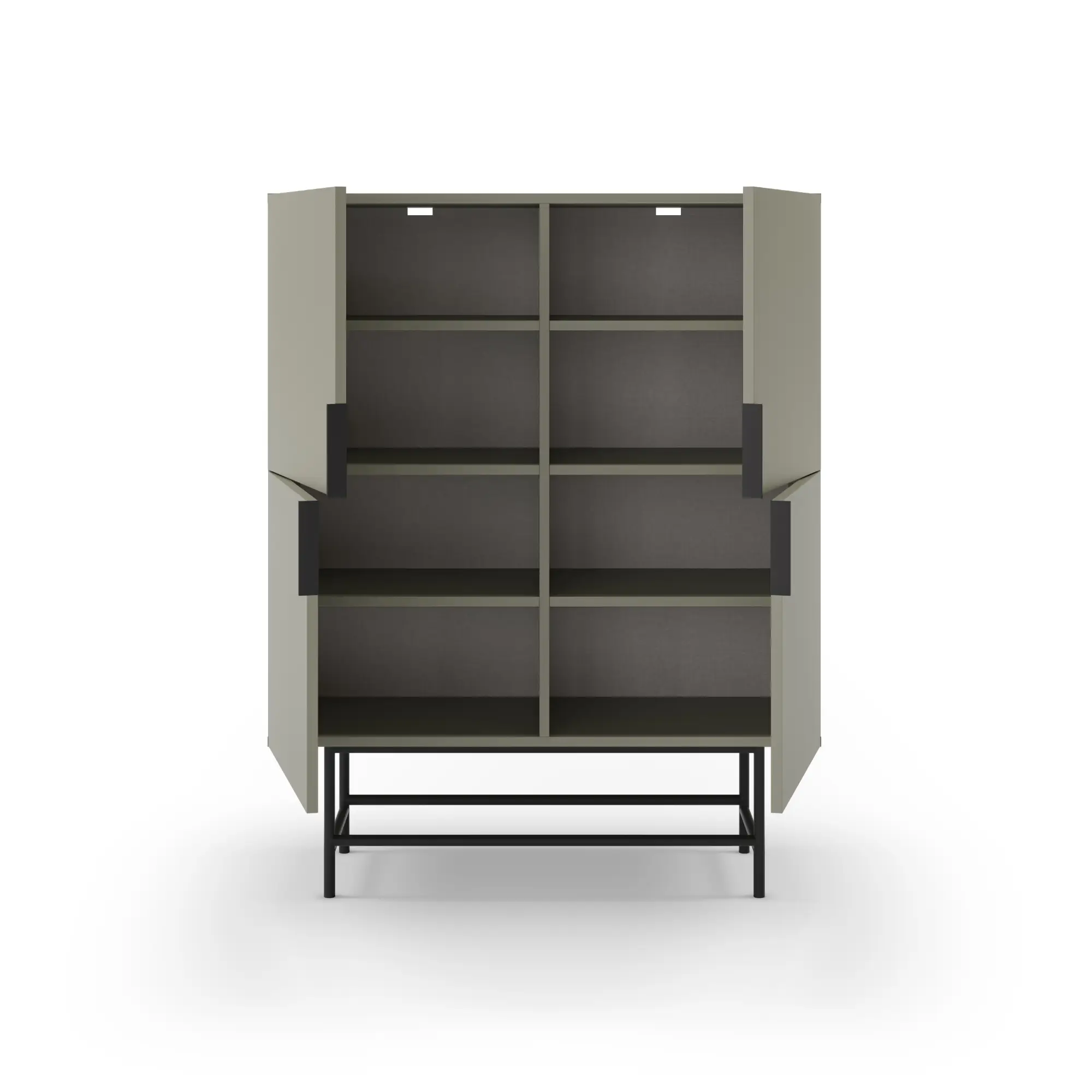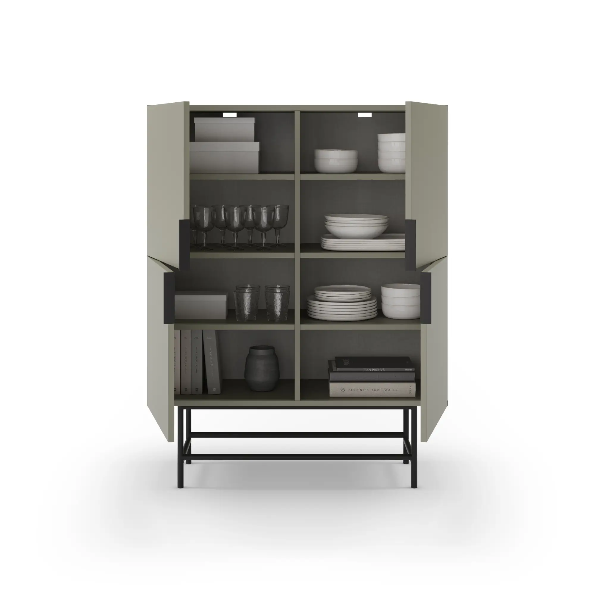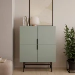 Mueble auxiliar alto Eldia en color verde con cuatro puertas y gran capacidad de almacenamiento para mantener cualquier espacio ordenado.