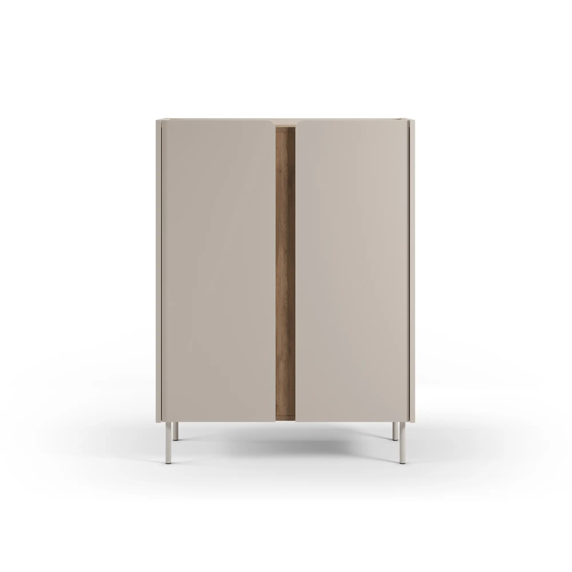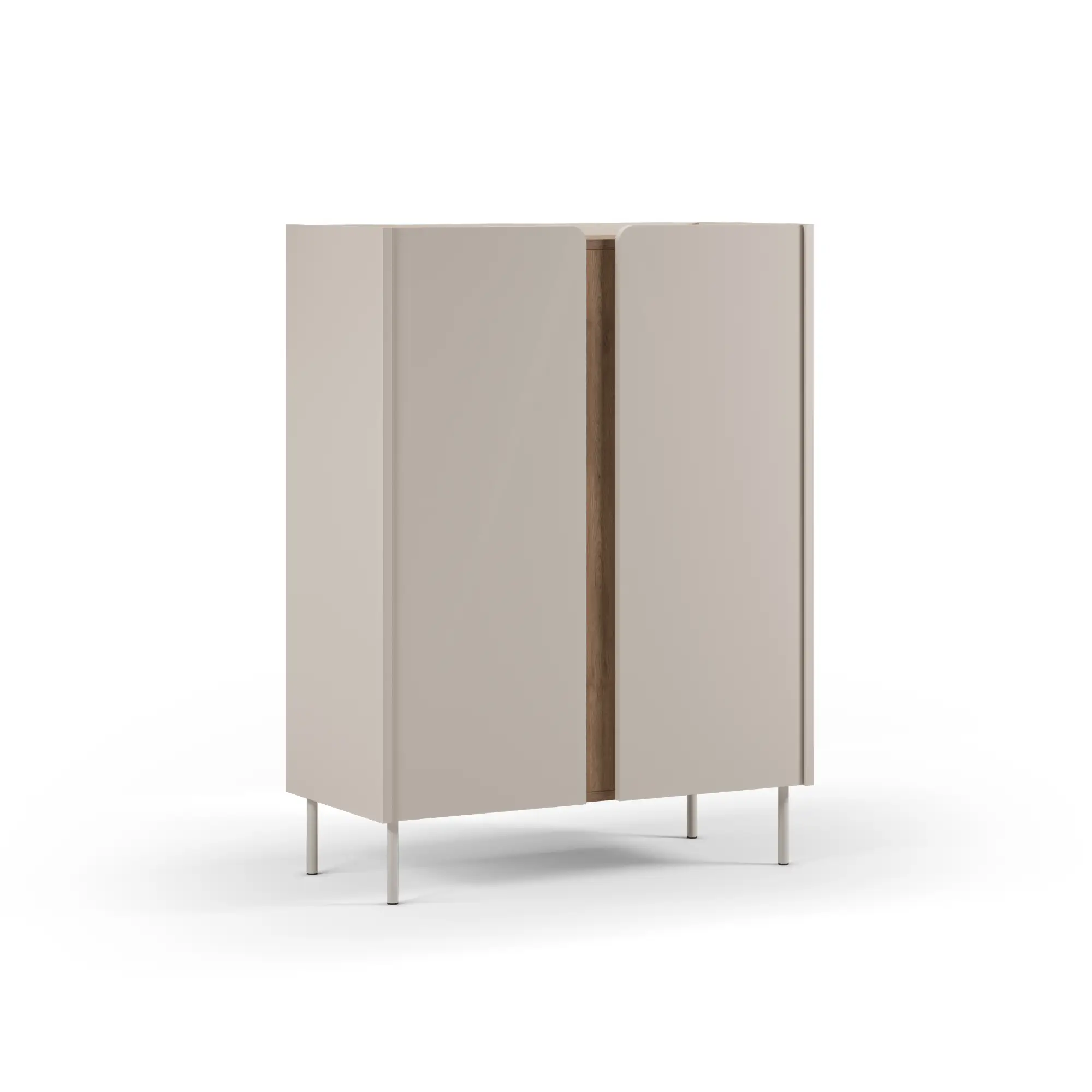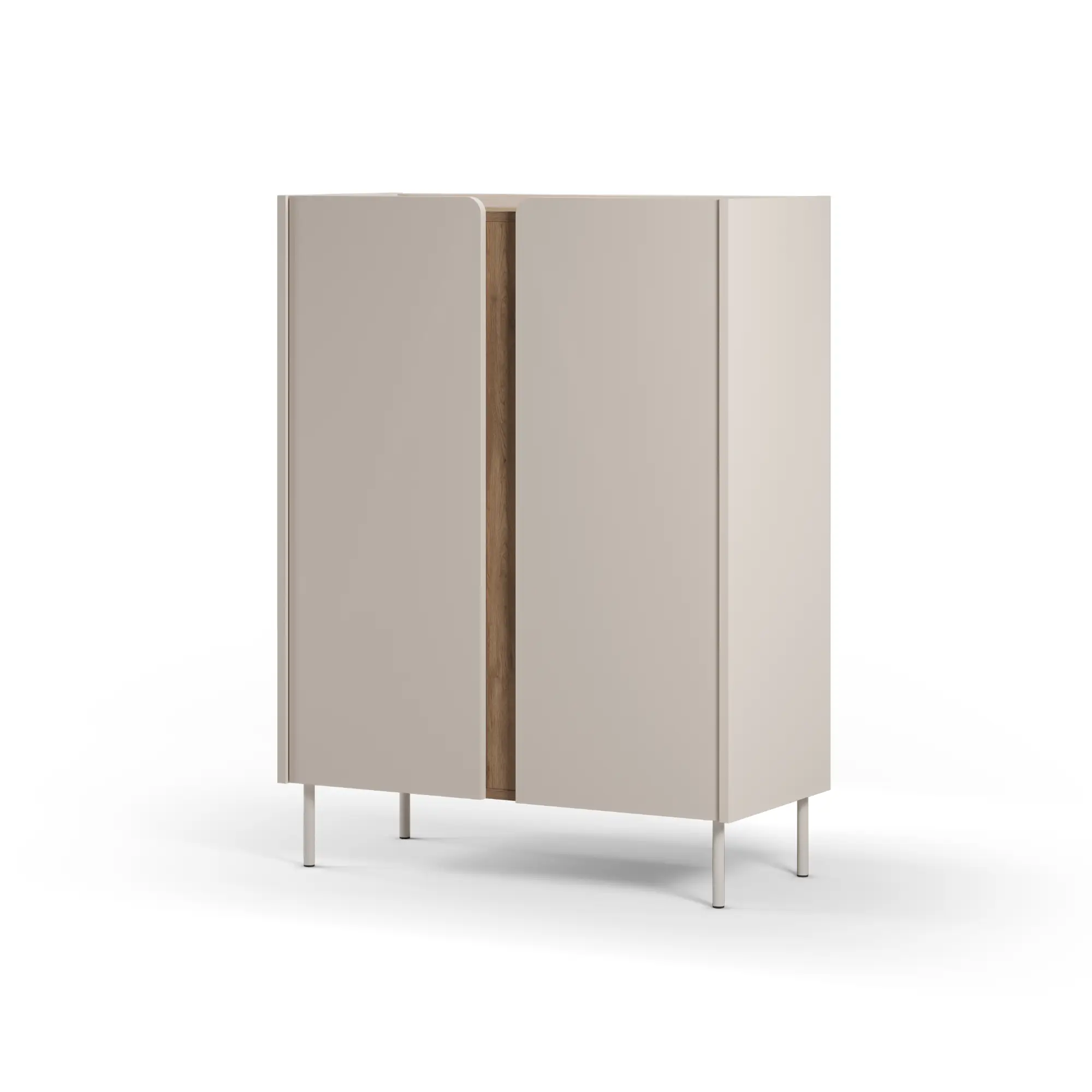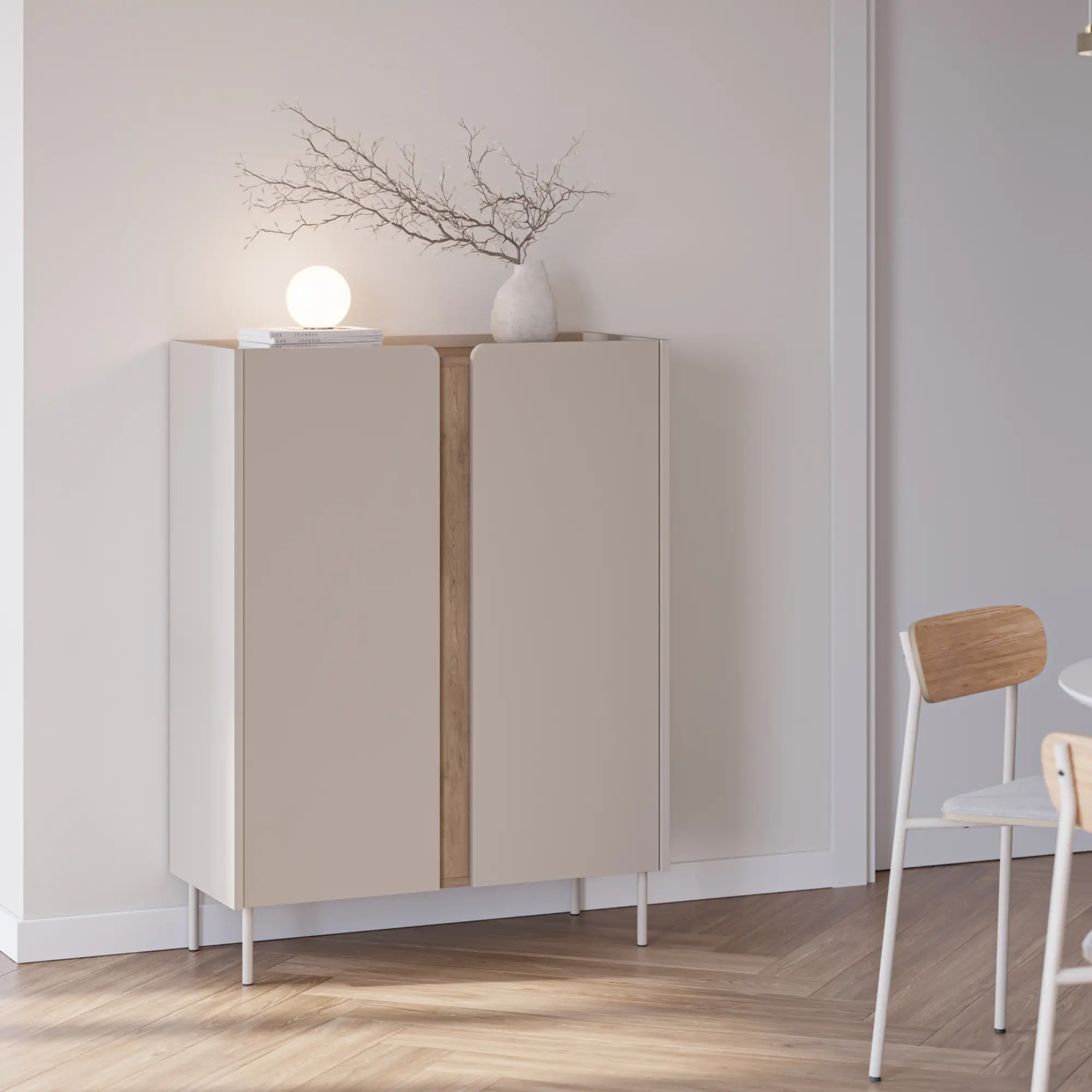 El mueble auxiliar alto Lucile es la respuesta a los desafíos del diseño interior moderno. Cuando el espacio en planta es limitado, la organización vertical es la clave. Este modelo de 90 cm de ancho destaca por su silueta esbelta y su sofisticada paleta de colores: un cuerpo en tono crema mate que abraza detalles en madera sepet, creando una pieza que irradia serenidad y orden.