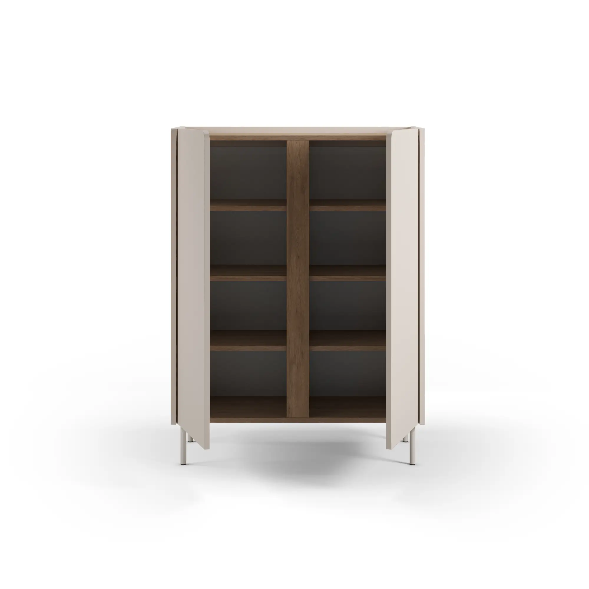 Máximo Almacenaje en Mínimo Espacio: Gracias a su configuración alta de dos puertas, este mueble permite organizar el doble de objetos que un aparador bajo ocupando la mitad de superficie. Es perfecto para comedores pequeños, estudios o como mueble de apoyo en zonas de paso.