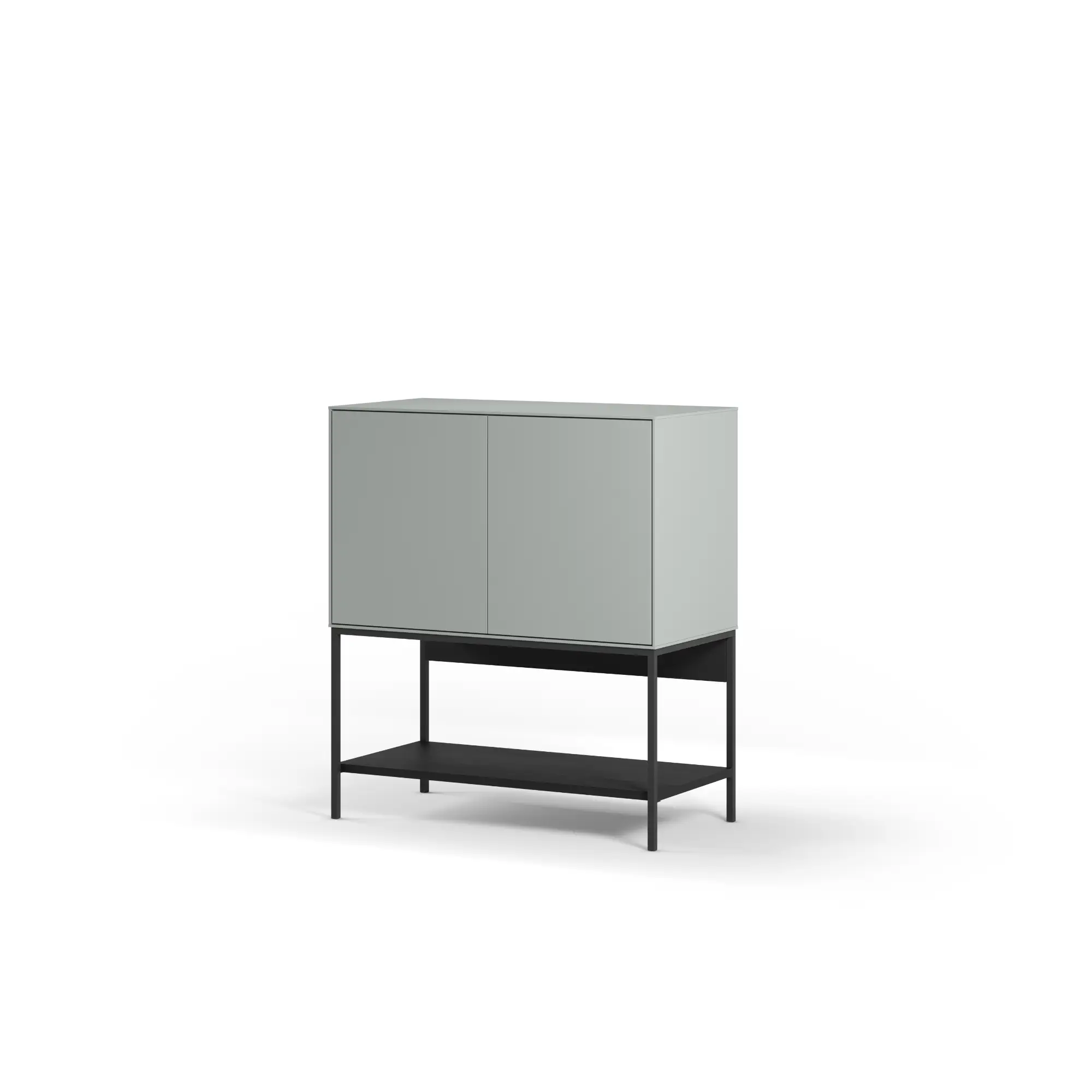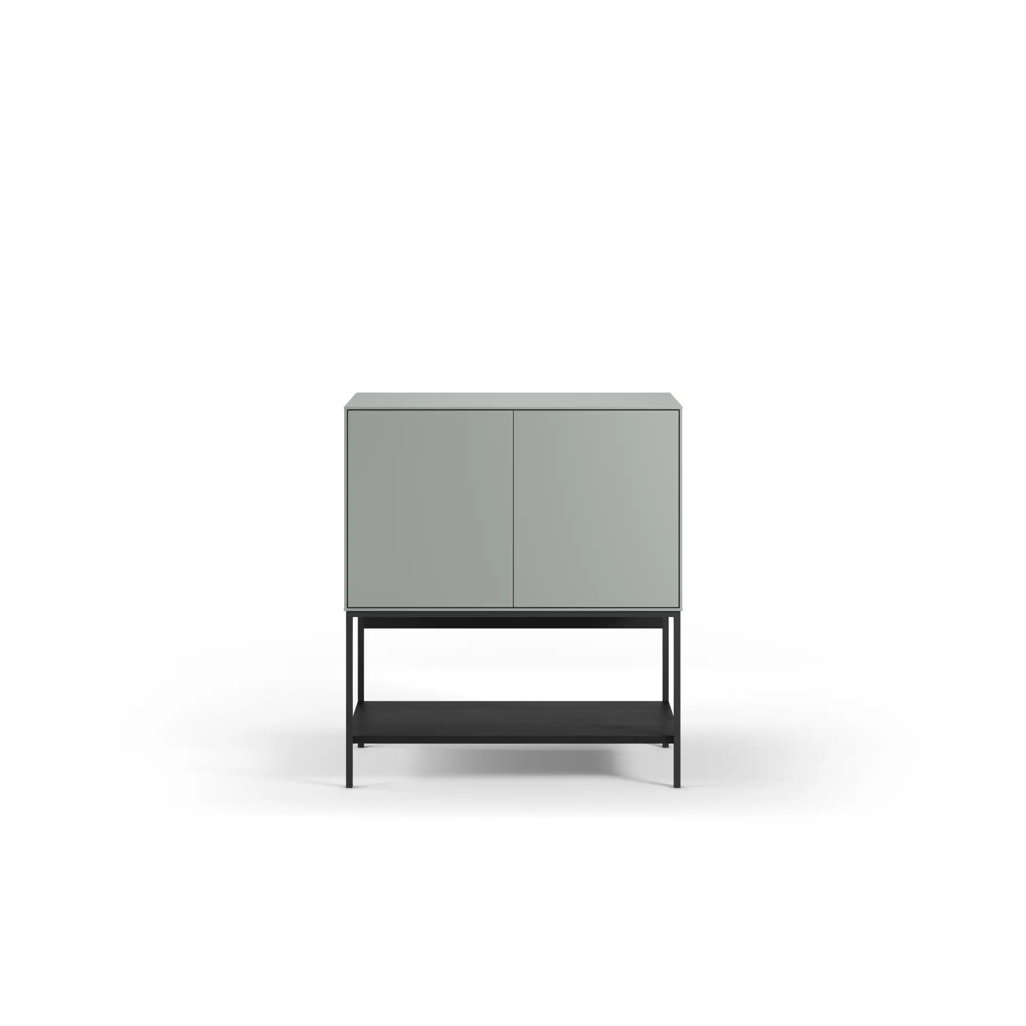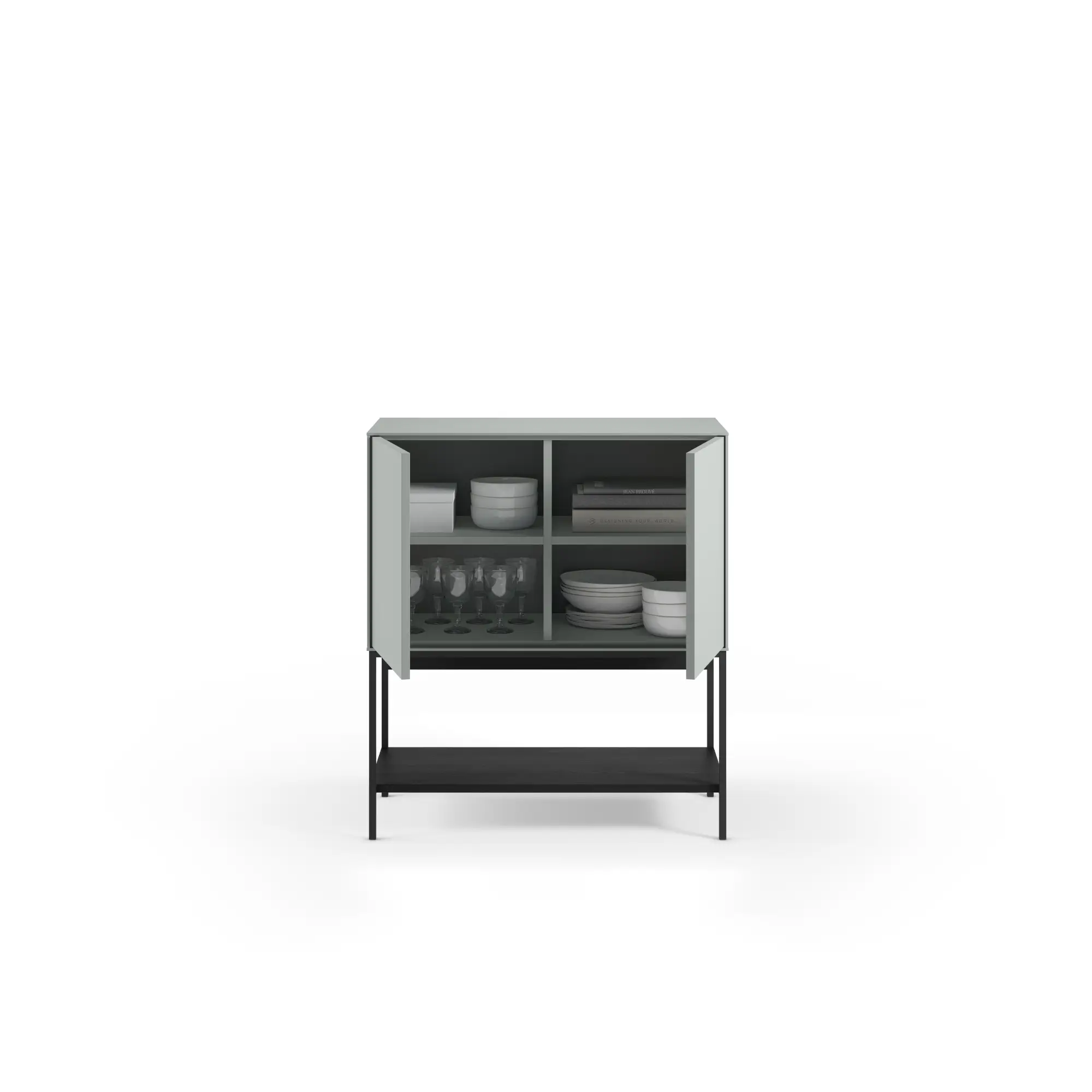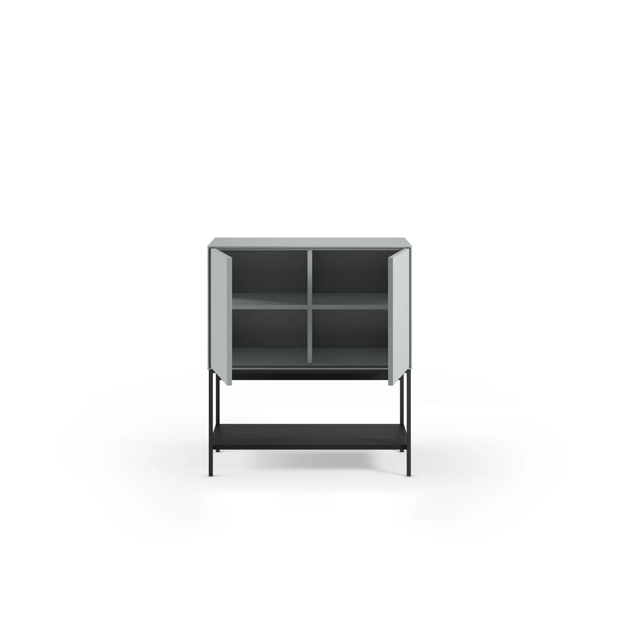 Mueble auxiliar Amira en acabado verde y negro con dos puertas y espacio de almacenamiento práctico para el hogar.