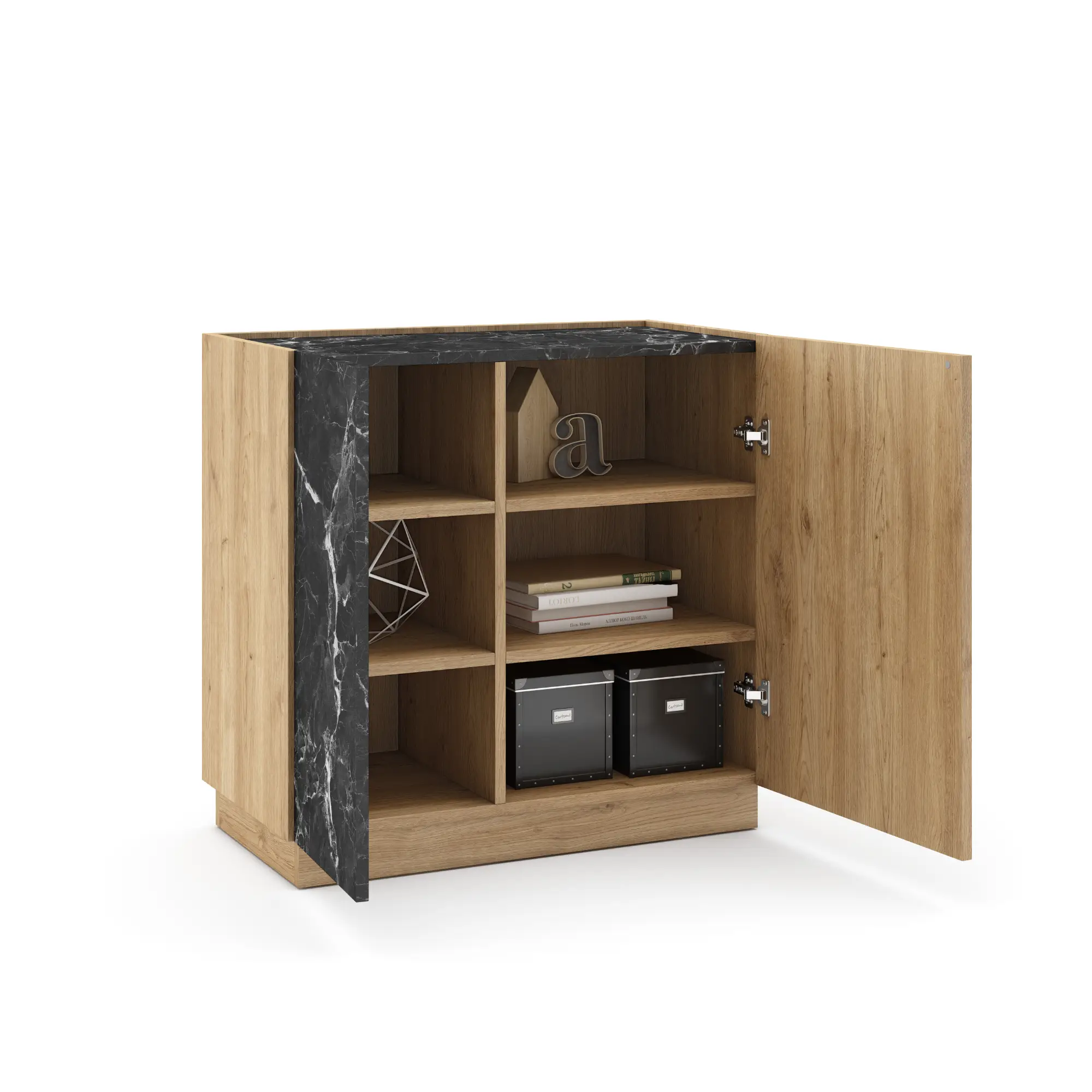 Mueble auxiliar Dione 2P en Sepet con detalles en mármol Lotus, elegante y funcional, perfecto para organizar y decorar cualquier espacio.