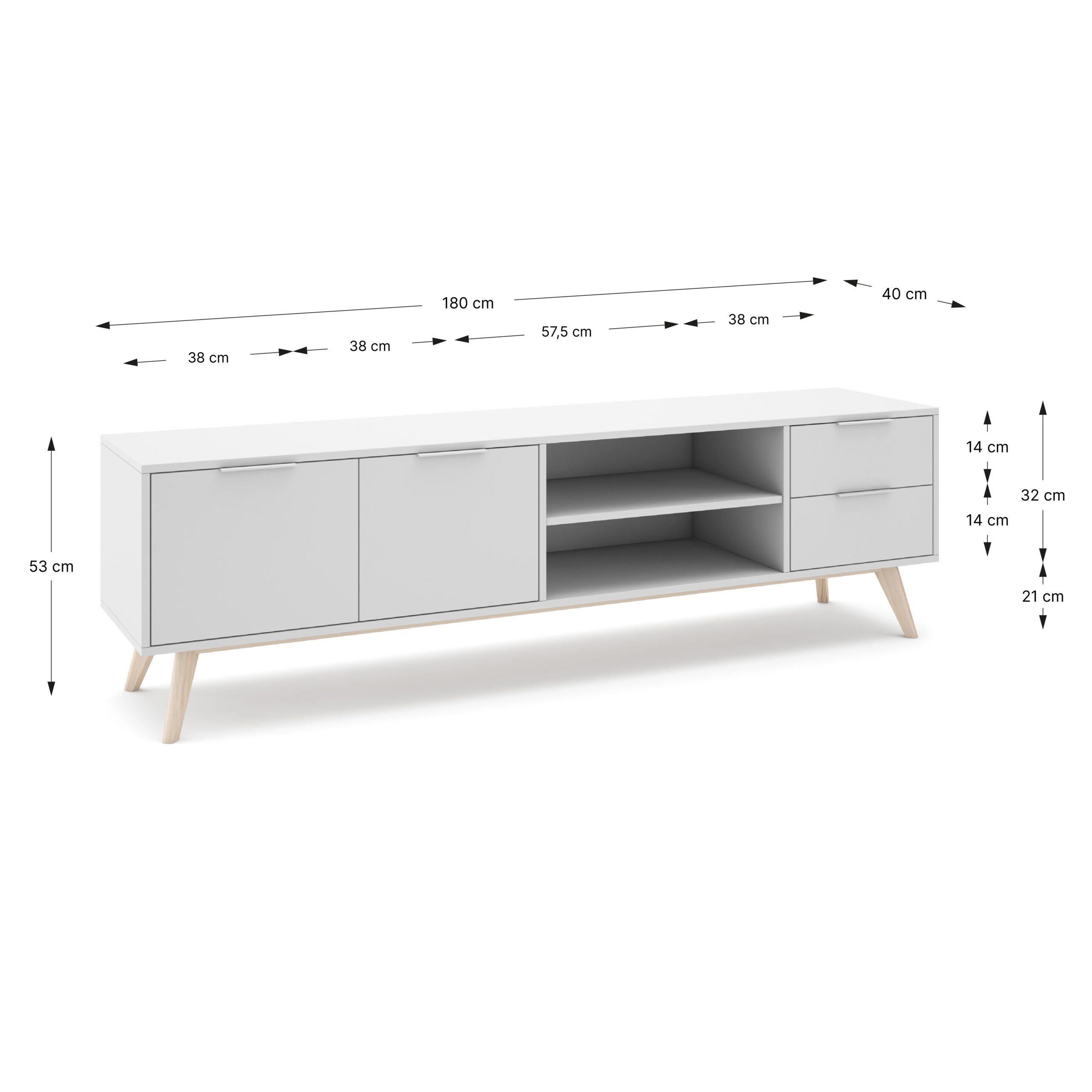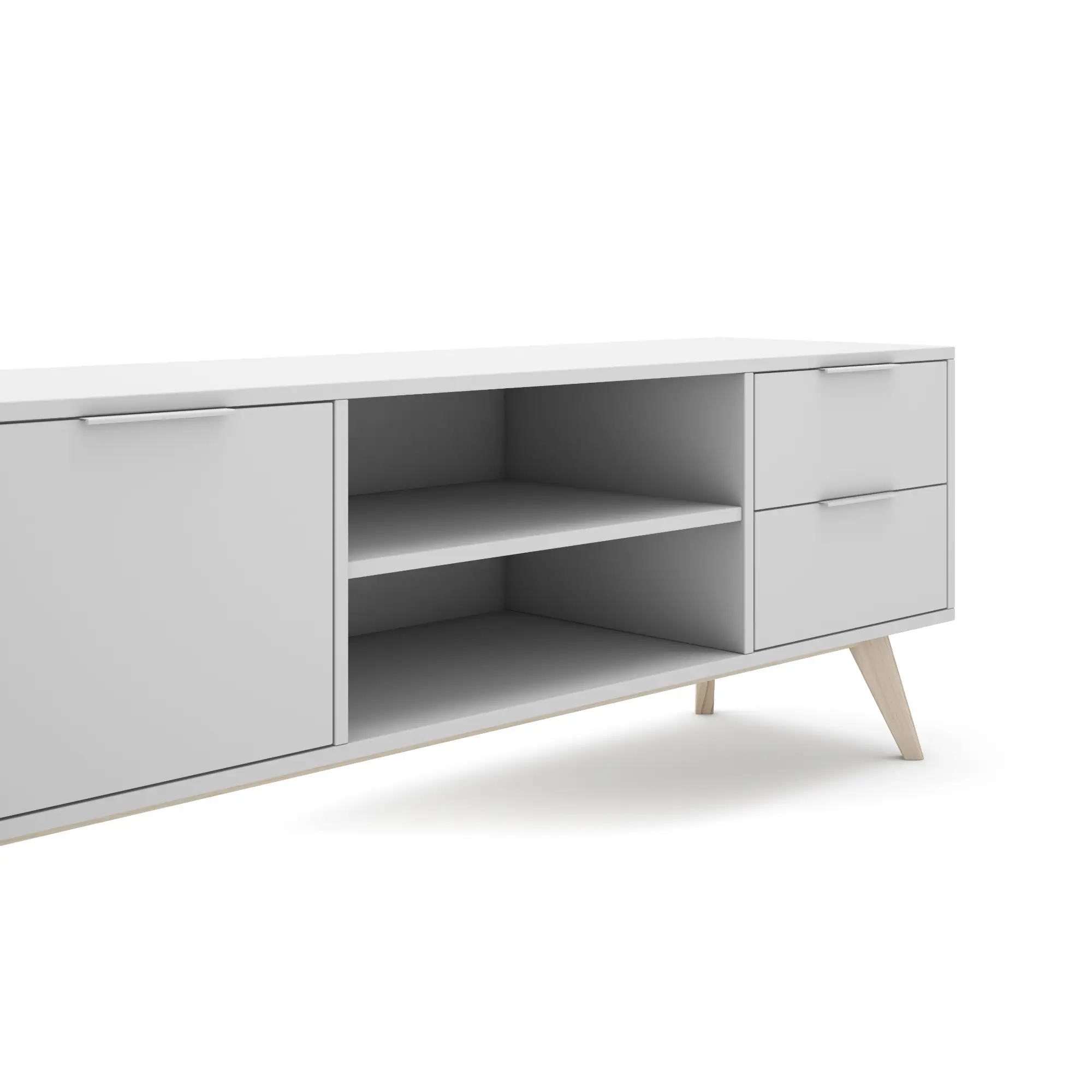 Estética Scandi-Chic: Sus líneas rectas y su base sólida lo convierten en una pieza atemporal. Es el soporte ideal para televisores XL, ofreciendo una superficie amplia que también permite colocar pequeños elementos decorativos a los lados.