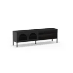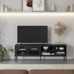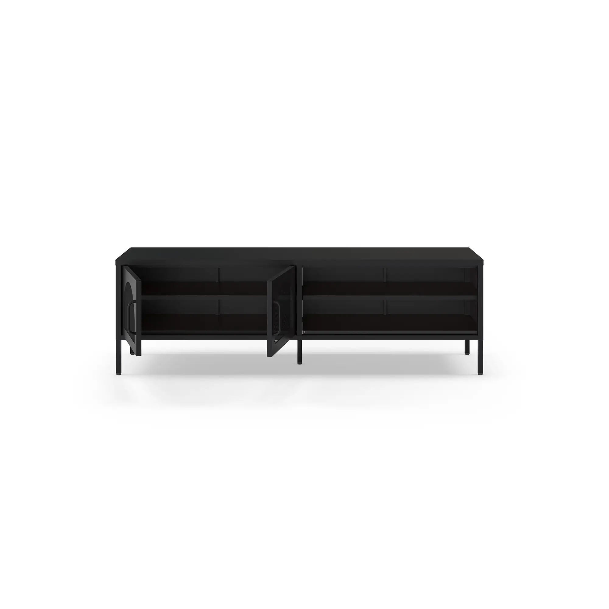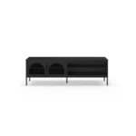 Mueble TV Diora 2P2H 160cm de color Negro es un mueble de televisión de diseño moderno y sofisticado, que ofrece una combinación estilizada de almacenamiento cerrado y exhibición abierta. Es ideal para salones contemporáneos que buscan un punto focal elegante.