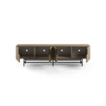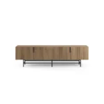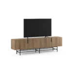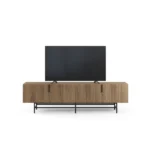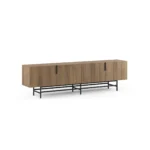 Gracias a sus 200 cm de largo, ofrece una superficie perfecta para televisores grandes y una gran capacidad de almacenamiento cerrado, combinando la calidez de la madera con la practicidad para un centro de entretenimiento moderno.