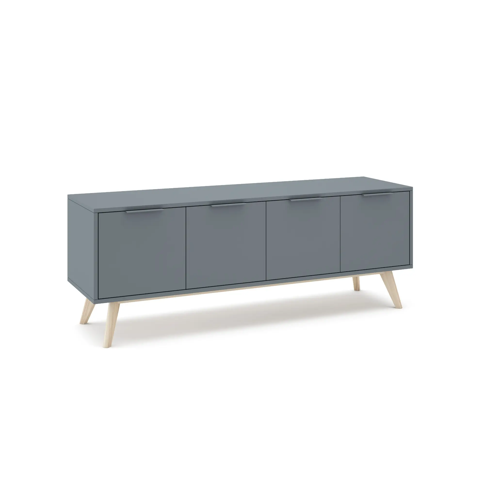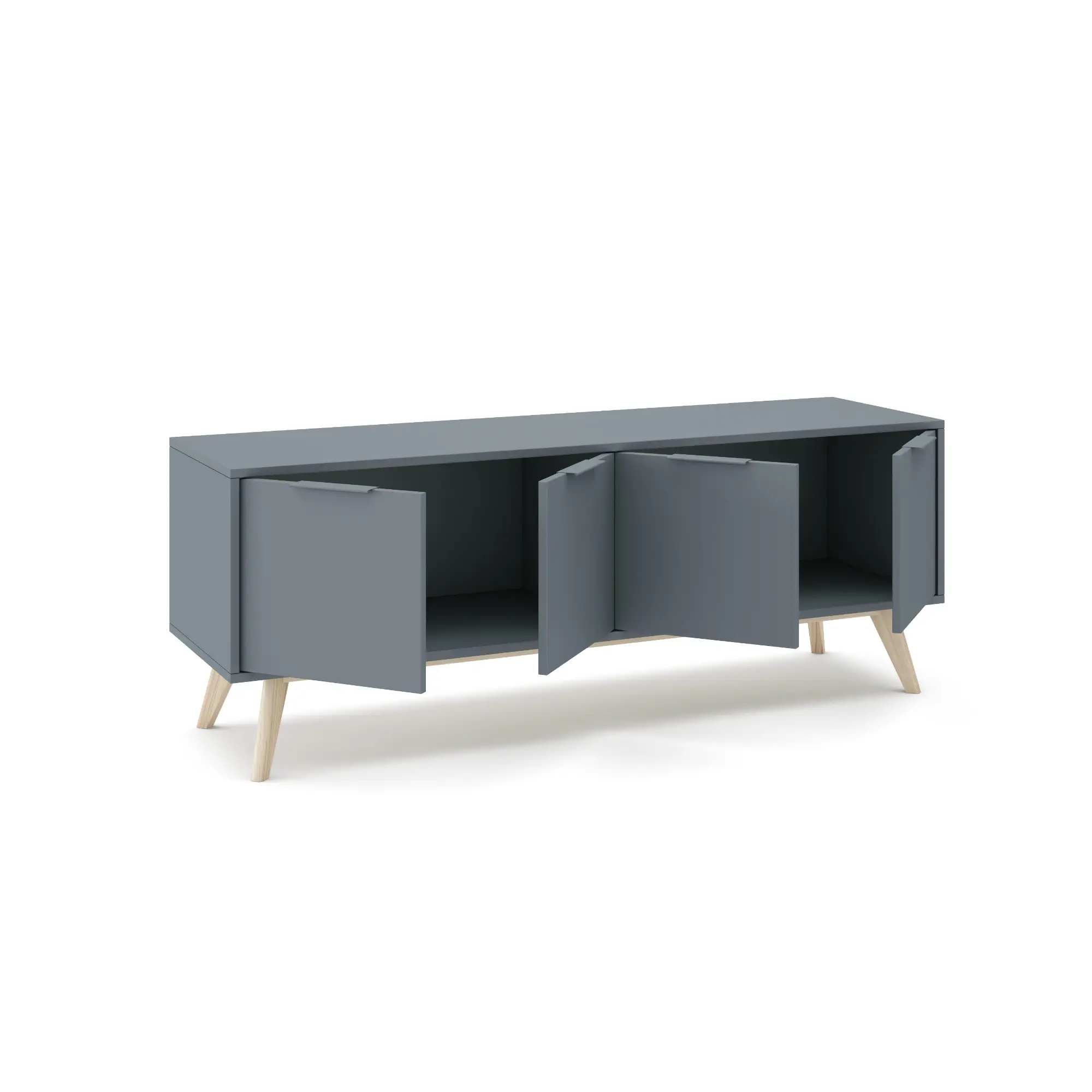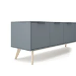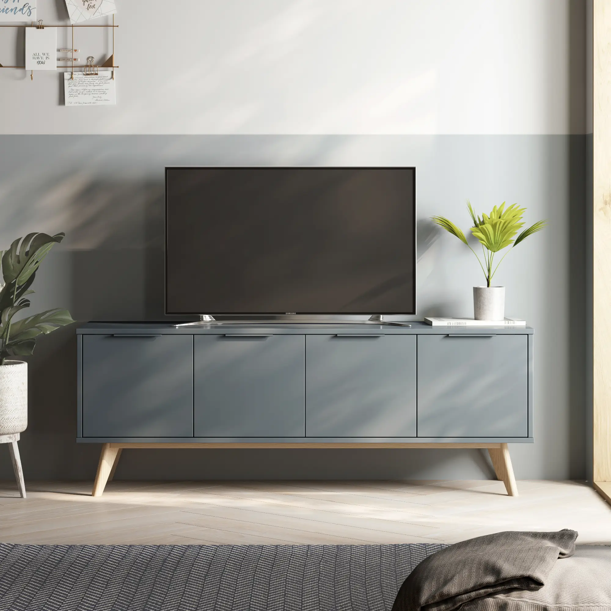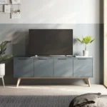 Almacenaje Oculto de 4 Puertas: A diferencia de los muebles de TV convencionales, este diseño utiliza cuatro puertas batientes para ofrecer un volumen de guardado masivo. Es ideal para ocultar consolas, decodificadores, colecciones de películas o vajilla, manteniendo el salón siempre impecable y libre de cables a la vista.