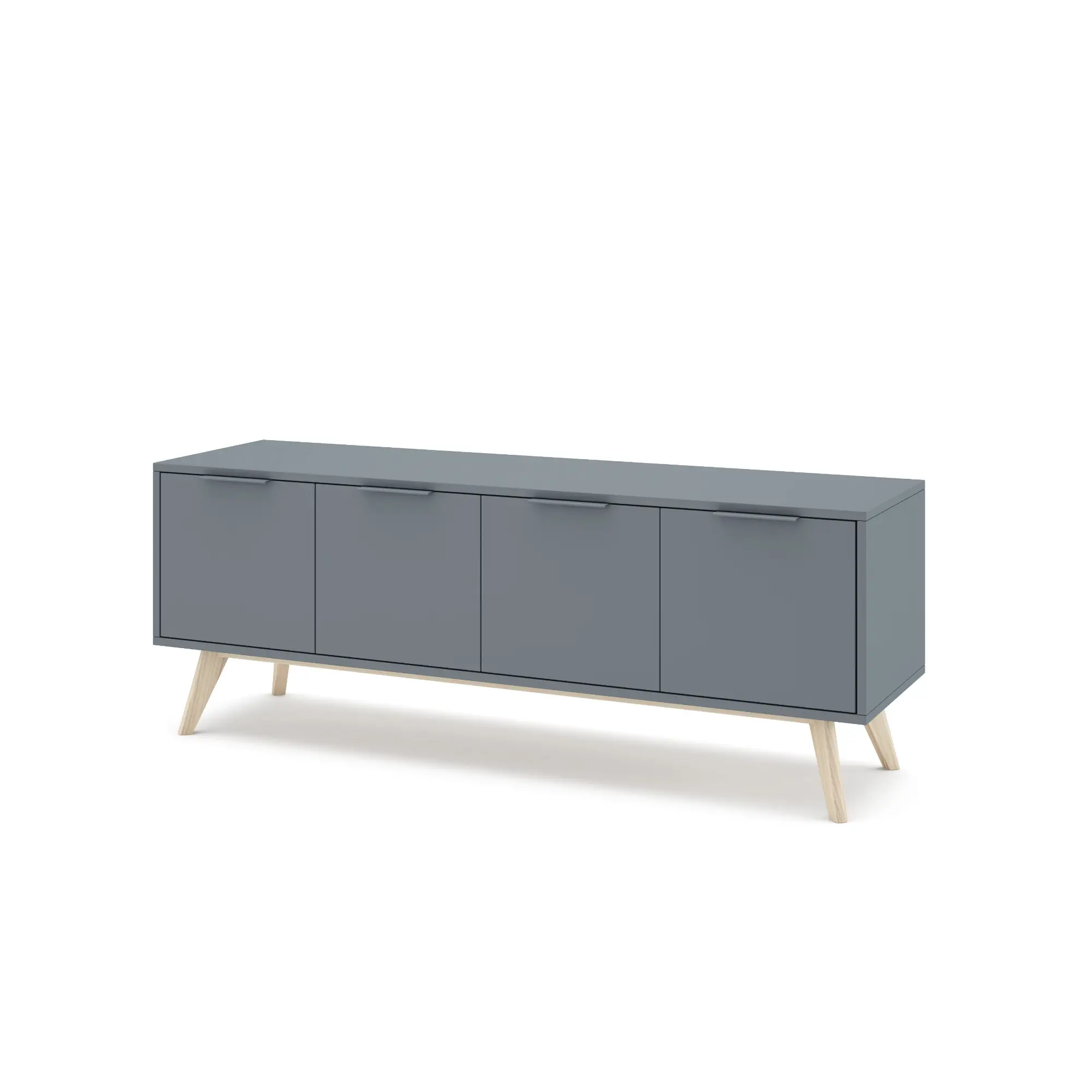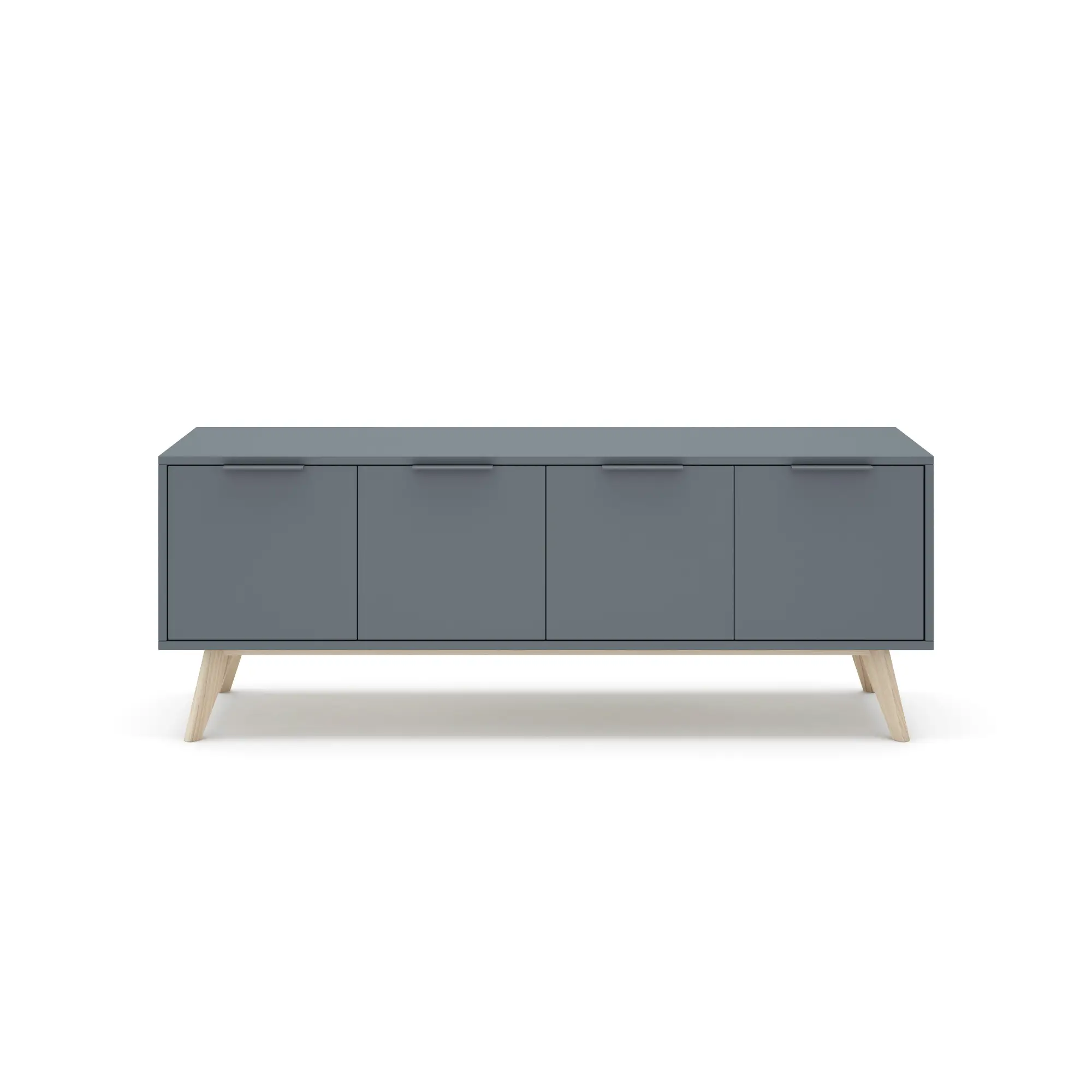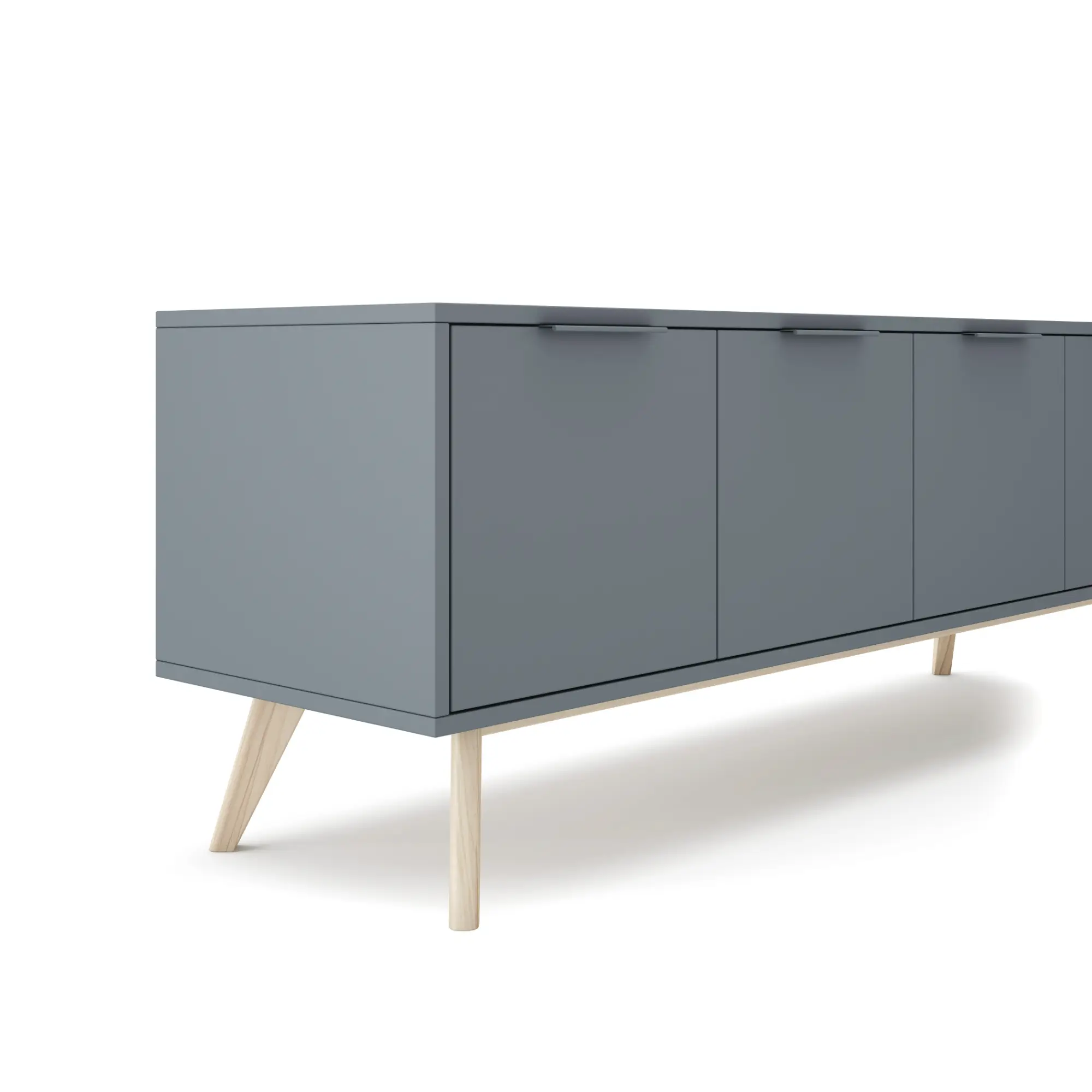 Almacenaje Oculto de 4 Puertas: A diferencia de los muebles de TV convencionales, este diseño utiliza cuatro puertas batientes para ofrecer un volumen de guardado masivo. Es ideal para ocultar consolas, decodificadores, colecciones de películas o vajilla, manteniendo el salón siempre impecable y libre de cables a la vista.